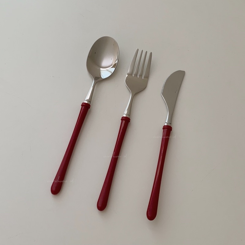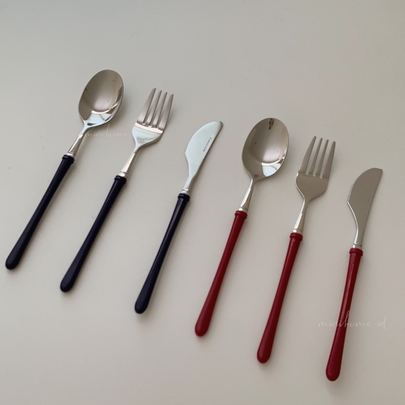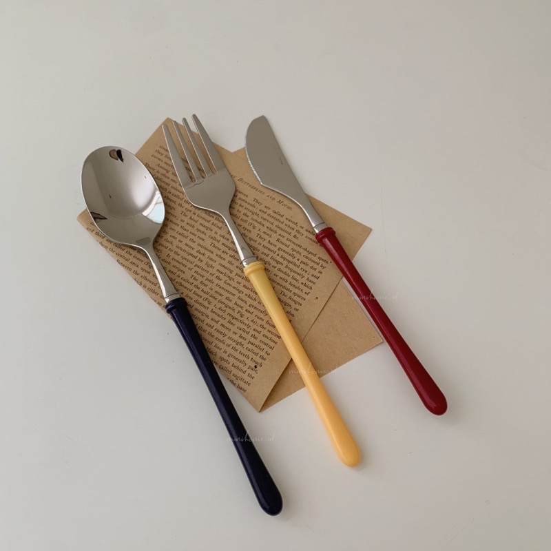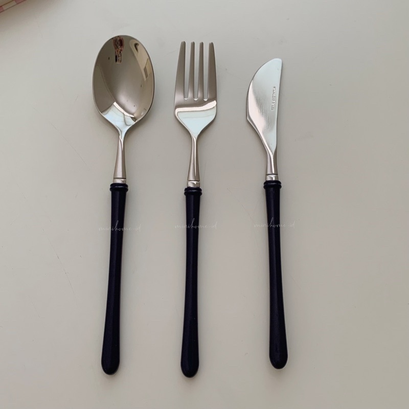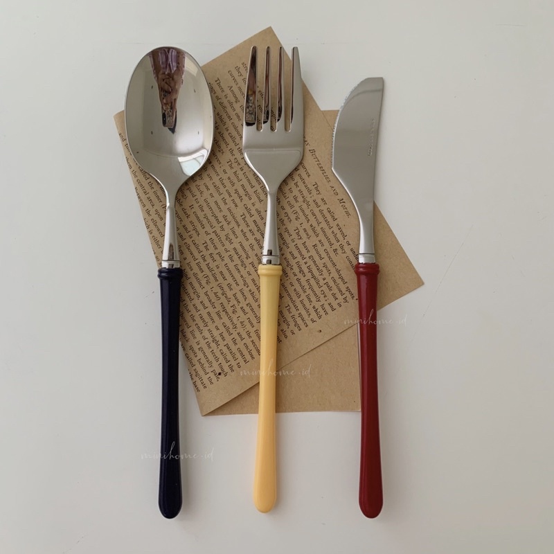 [MINIHOME] YURA Cutlery Sendok Garpu Pisau Set Alat Makan Polos Vintage Stainless Steel Korean Cafe