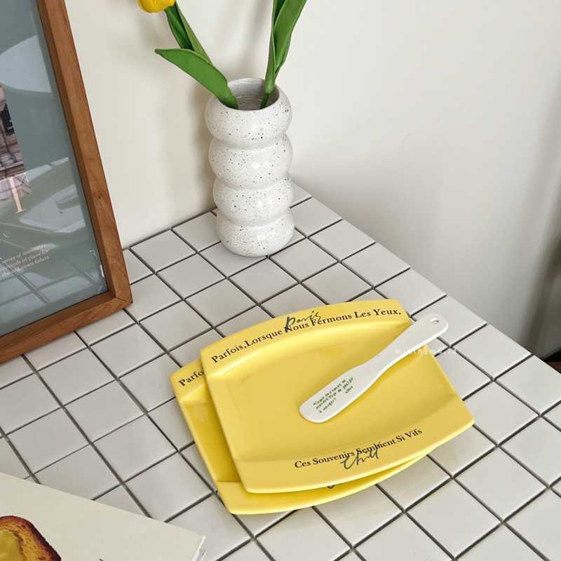[MINIHOME] LILLY Piring Alat Makan Keramik 18cm Square Plate Aesthetic Vintage Retro High Quality