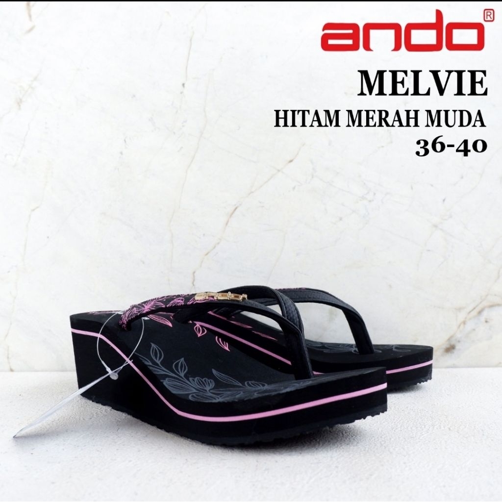 Sandal ANDO Size 36-40 - ALPHADIA - KEIKO - MELVIE - ADHISTA - SAFINA - SENORITA - ALYA - ADRIANA - IMEL - SHALITA - Sandal Jepit Wedges Wanita