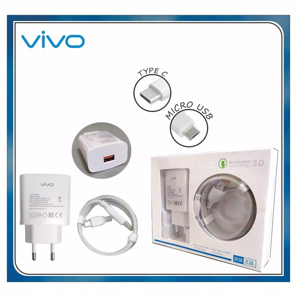 Fast Charger Charging Vivo Y17 Y53 Y55V3 V5 Max V7 V9 V11 V15 USB Micro Type C Original 100