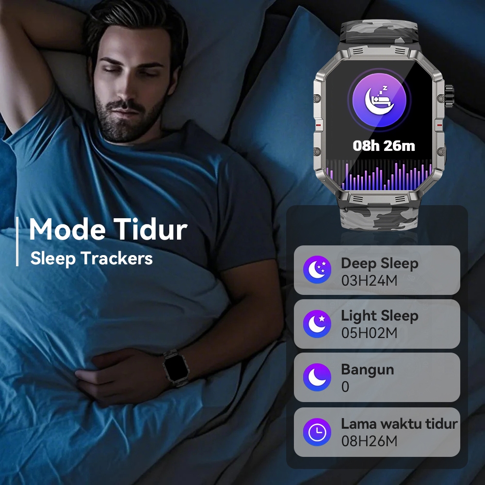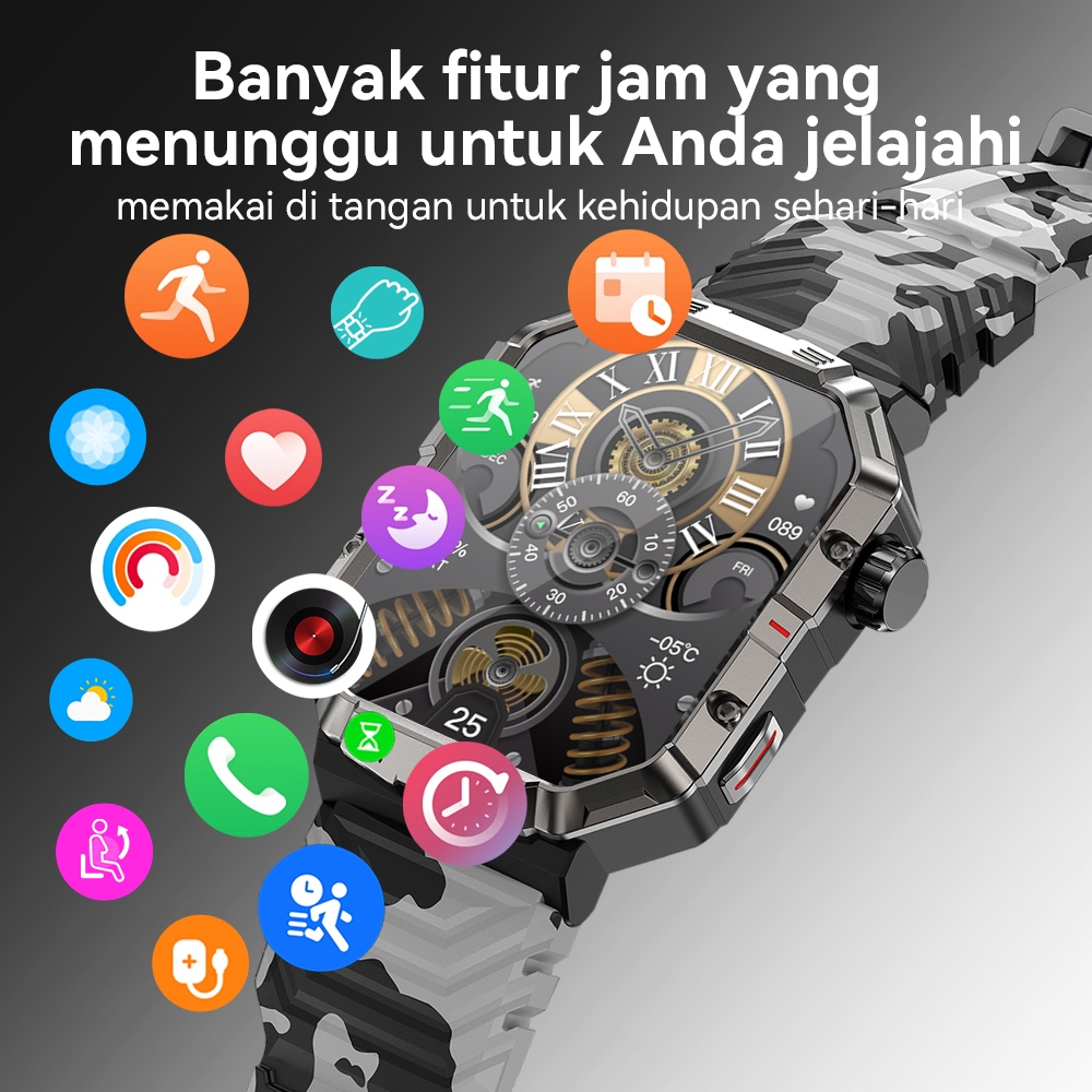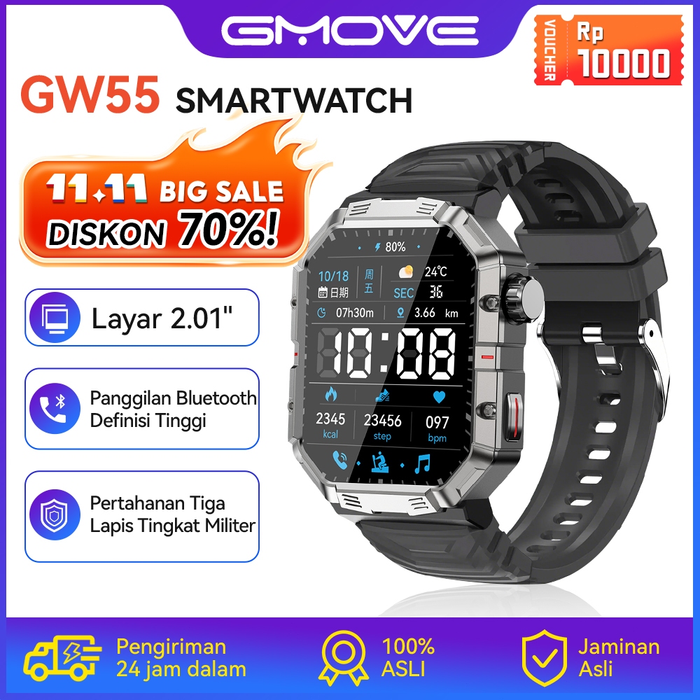GMove GW55 Military Smartwatch Outdoor Sport Tahan Air IP68 Sleep Health Monitor Jam Tangan Pria