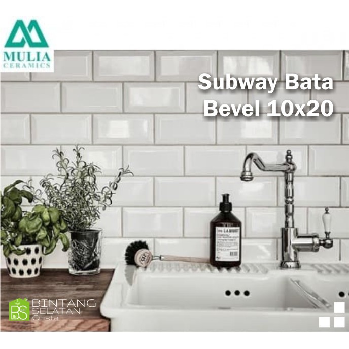Keramik Ceramic Subway Bata Bevel Mulia Signature Metro White 10x20 KW 2