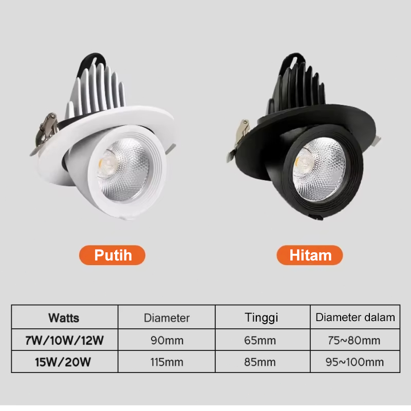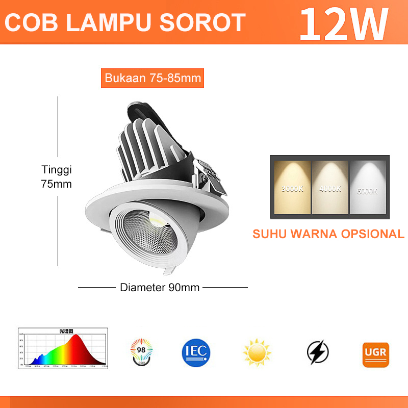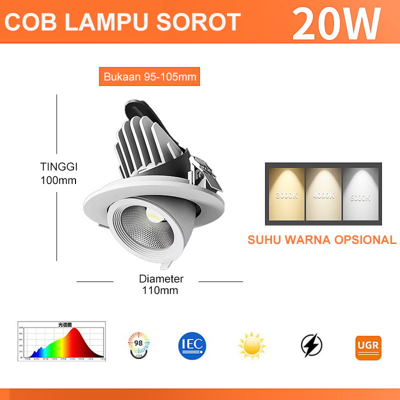 Lampu Downlight LED & Spot Light COB 12W 20W 30W - Lampu Sorot Pencahayaan Fokus untuk Ruang Tamu, Kamar Tidur, Showcase & Dekorasi | Pemasangan Mudah & Hemat Energi