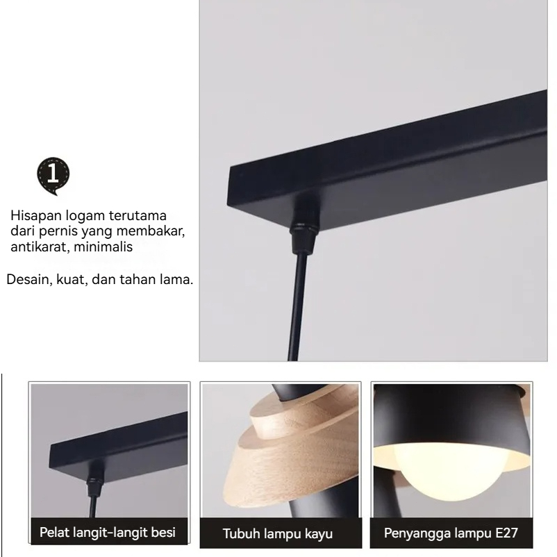 Lampu Gantung Kayu Solid Minimalis Nordik - Lampu Gantung Plafon Modern untuk Ruang Tamu, Ruang Makan & Kamar Tidur | Tanpa Bohlam | Desain Simpel dan Elegan