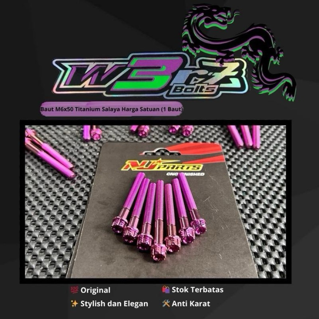 Baut m6x50 titanium 2 kunci model salaya drat 10 panjang 5cm Original titanium model salaya 2 kunci harga satuan (1 baut) Motorcycle