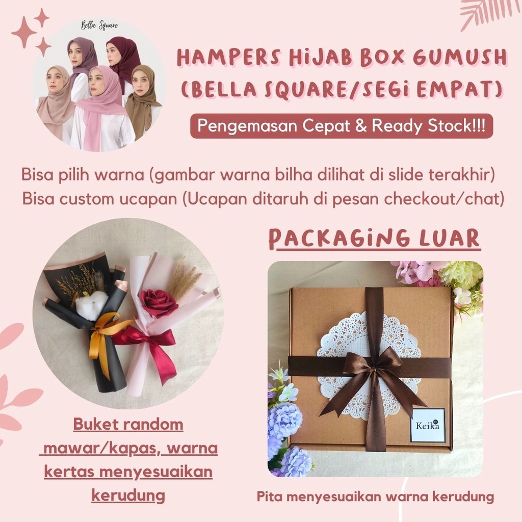 Hampers Hijab Box Gumush | Hampers kerudung Paket Kado Hijab Kado Kerudung Cewek Hampers Jilbab Bella Square Segi empat hadiah Wisuda Ultah ulang tahunParcel Lebaran Hampers Idul Fitri