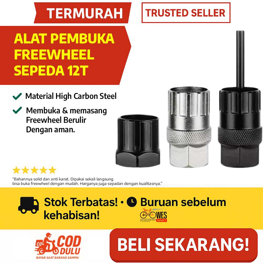 Alat Pembuka Freewheel Sepeda 12T – Kunci Sprocket Sleeve Tool High Carbon Steel