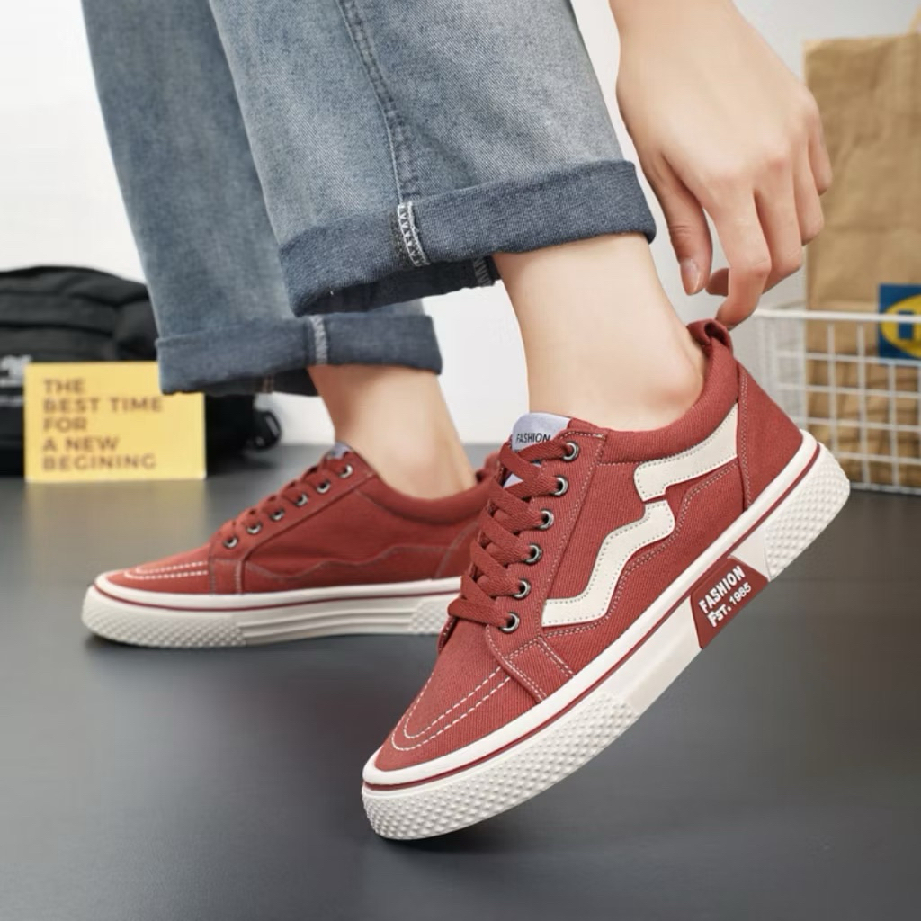 Whoppy Casper SL65 Sepatu Cowok Keren Outfit Denim Karet Shoes Hitam Hijau Orange Denim Sneakers