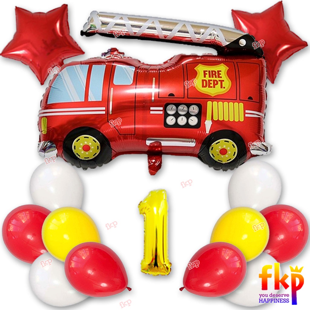 FUN KIDS PARTY Paket Dekorasi Simpel Pemadam Kebakaran Ulang Tahun Anak Laki / Mobil Pahlawan Dekorasi Set Ultah