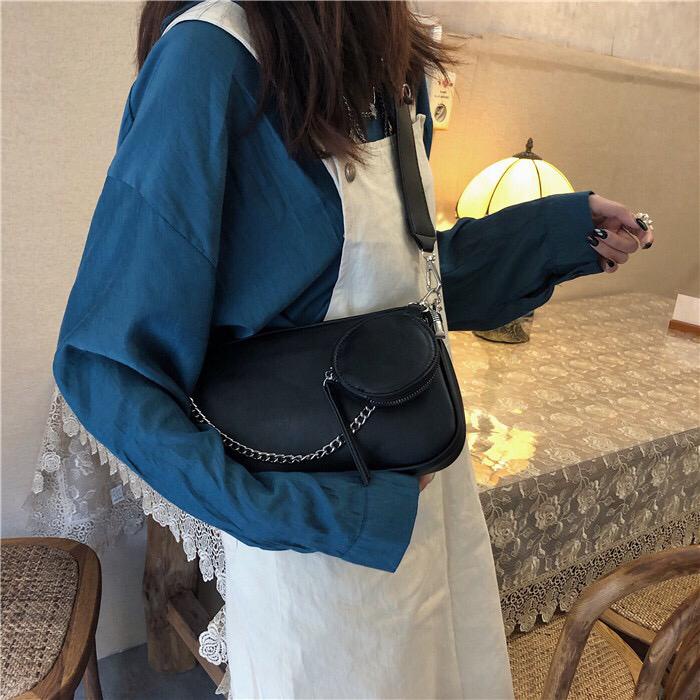 Tas Selempang Bahu Wanita Hobo Armpit Baguette Pochette Feli Slingbag Polos Korean Style PU Import