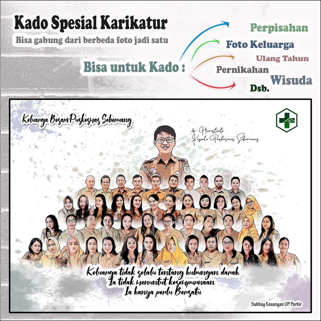 Gabung Foto Karikatur Kado Spesial (Perwajah), min 2 wajah, hadiah perpisahan dll, saffana desain