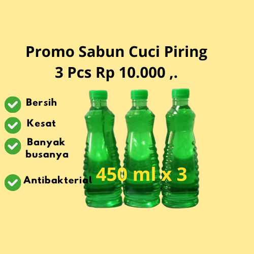 Paket sabun cuci piring 3 pcs mirip sunlight @ 450 ml- Sabun cuci piring bersih kesat antibakterial