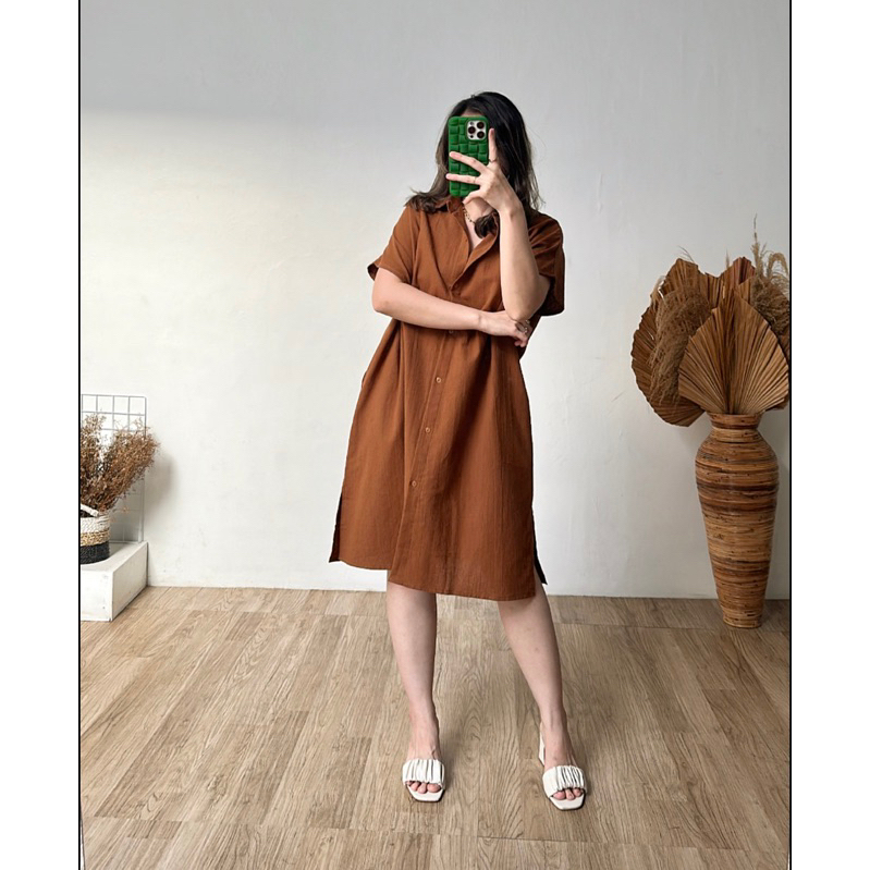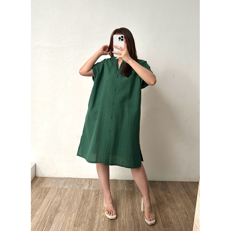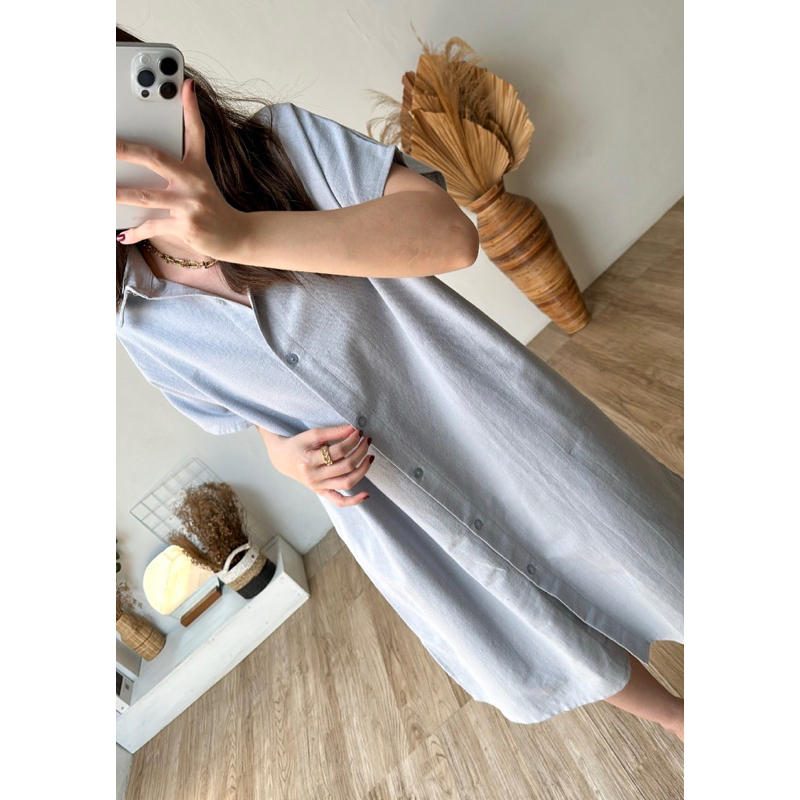 Melca Linen Dress | Outer Dress Kemeja Kantor Kuliah Best Seller Hijab Friendly Busui dan Bumil