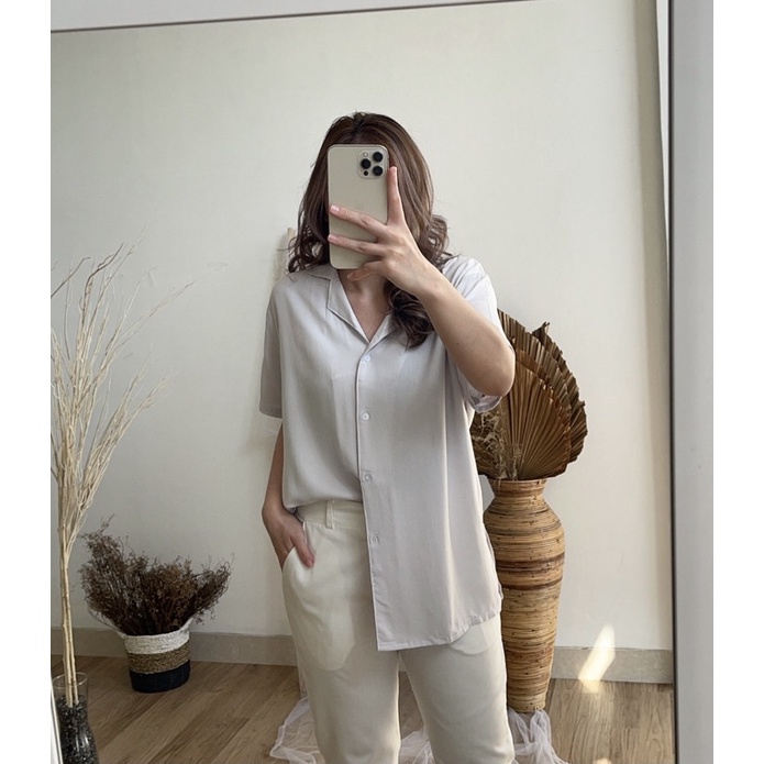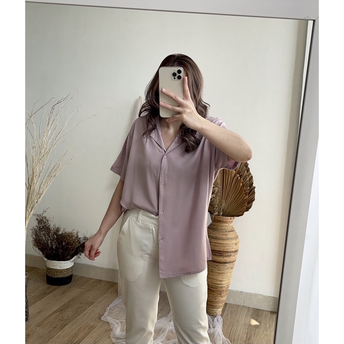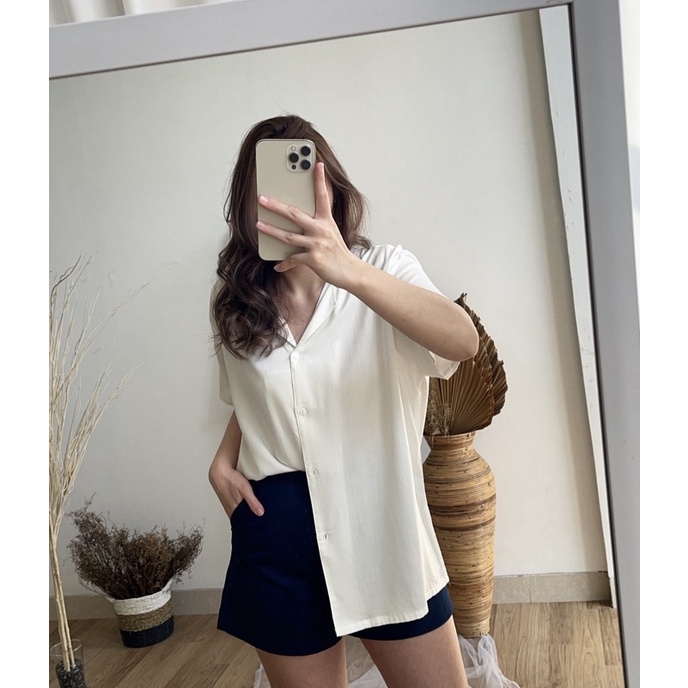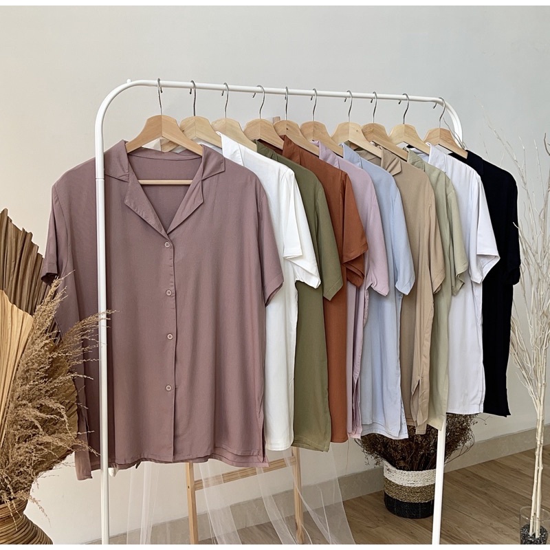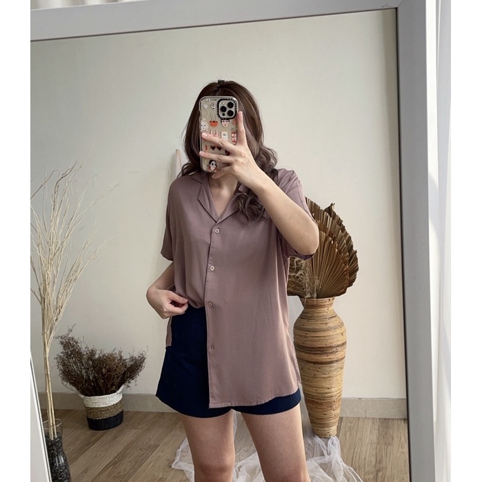 Odie Button Top | Fashion Blouse Basic Atasan Lengan Pendek Oversized | Nyaman Cocok untuk Kantor Kuliah Adem Best Seller | Kemeja Murah Meriah