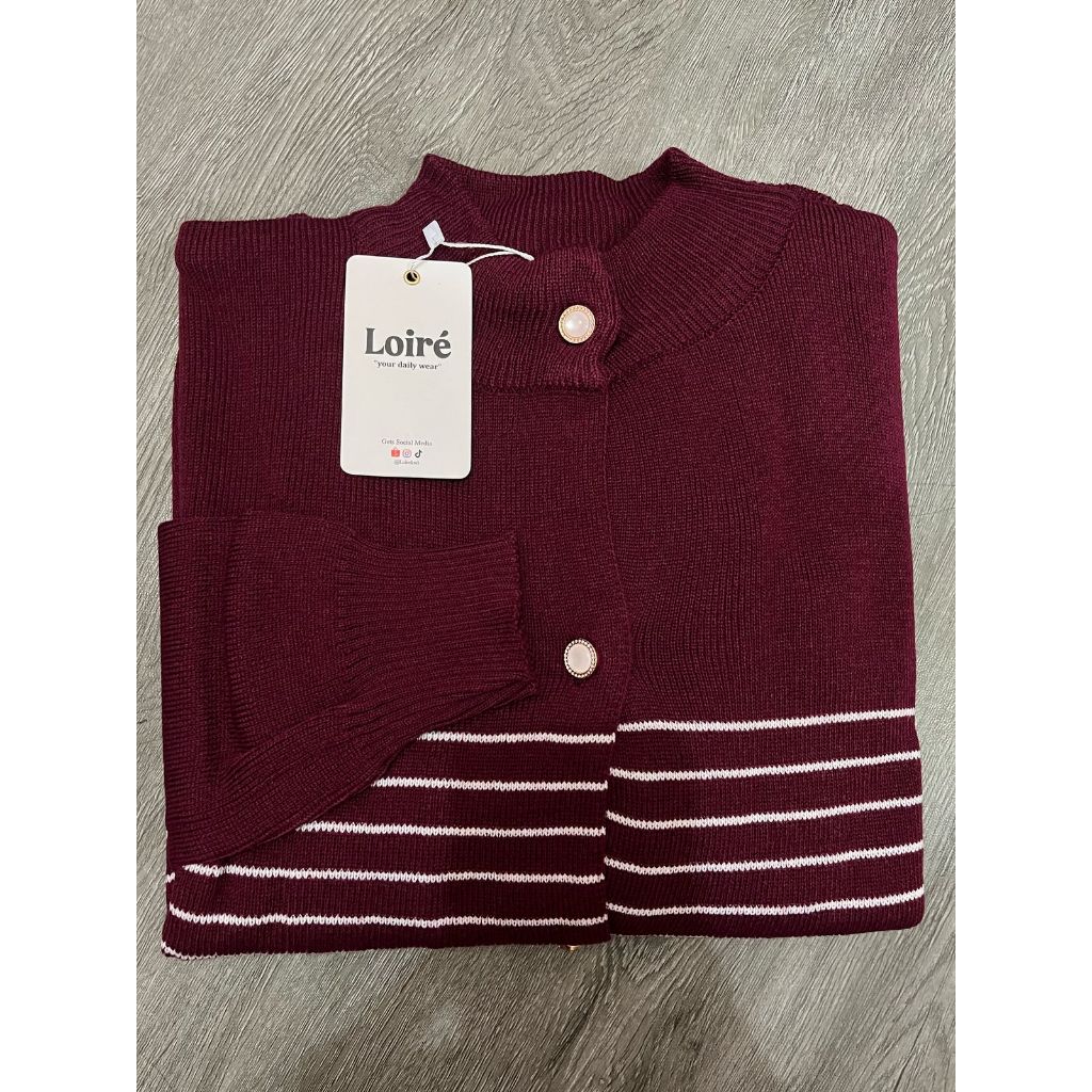 LOIRE FAYOLA Cardy Top | Cardigan Rajut Premium | Kardigan Korean Style Motif Garis
