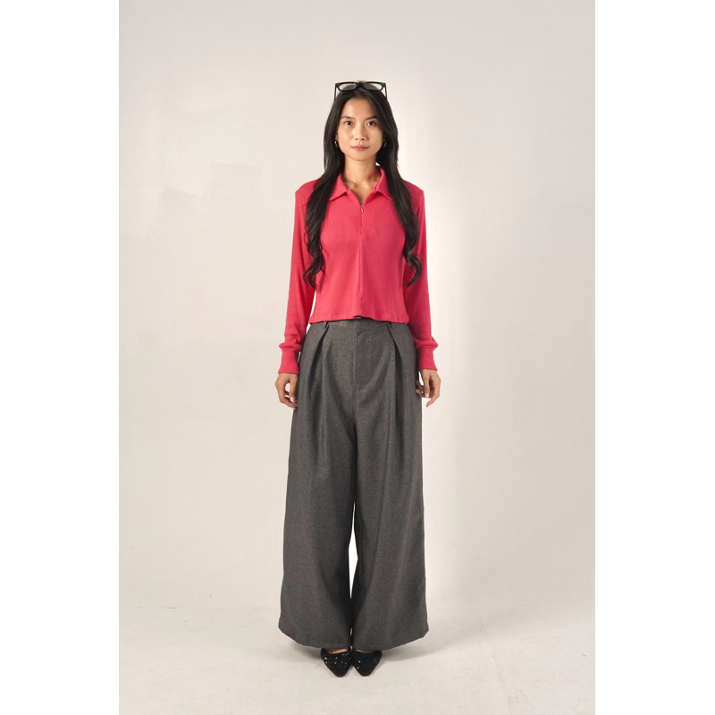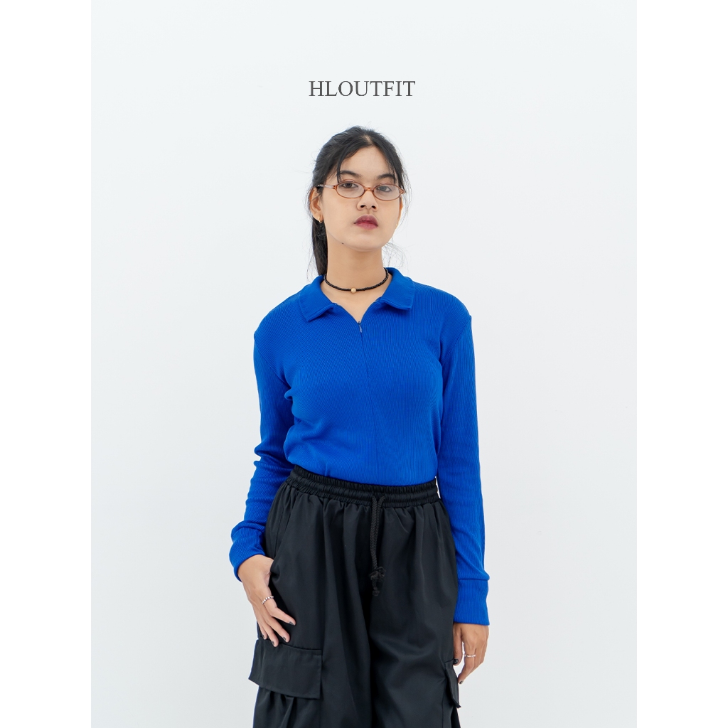 HL Zipper Basic Top Ribbed Knit- Long Sleeve Rib Top- Korean Top Fitted (H Series)