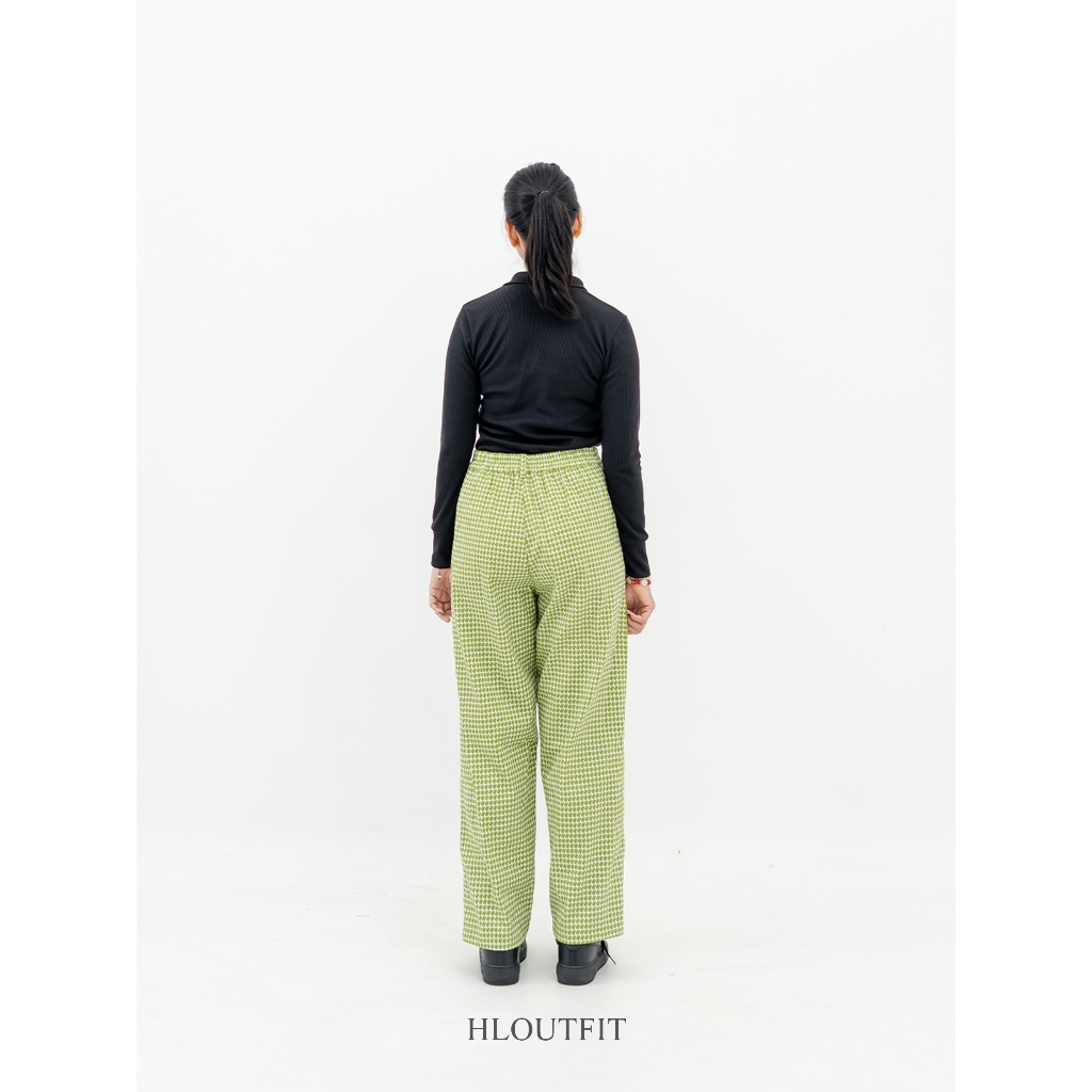 HL Houndstooth Green Pants- Celana Twill Printed Highwaist (H Series)