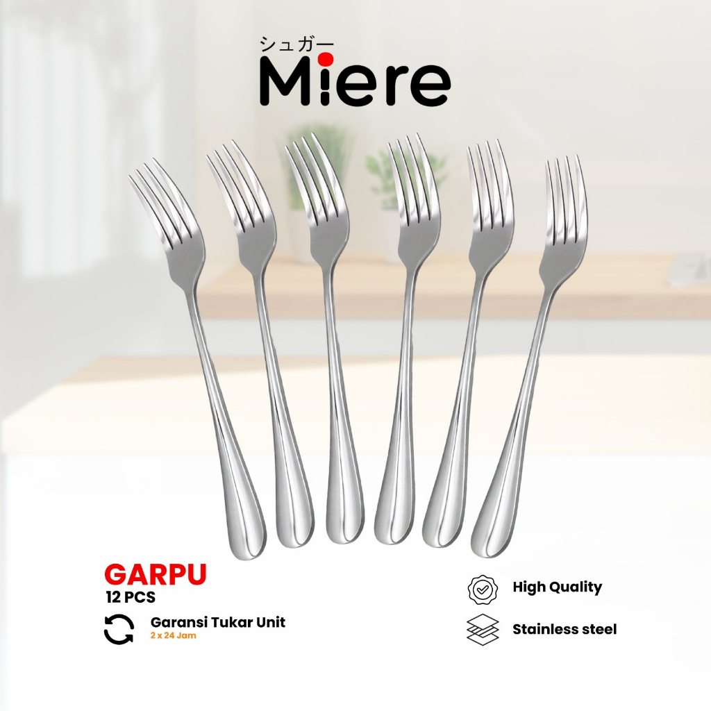MiereHome Sendok & Garpu Makan Tebal 6 Pcs Set StainlessSteel Berkualitas Tinggi Cocok untuk Rumah Kafe RestoranHotel Kitchenware