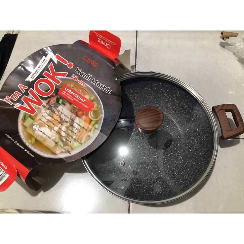 Cypruz Fry Pan KI 0649 uk 28 CM - Marble Coating + Lid (tutup) - Penggorengan/kuali - Wajan Anti Lengket