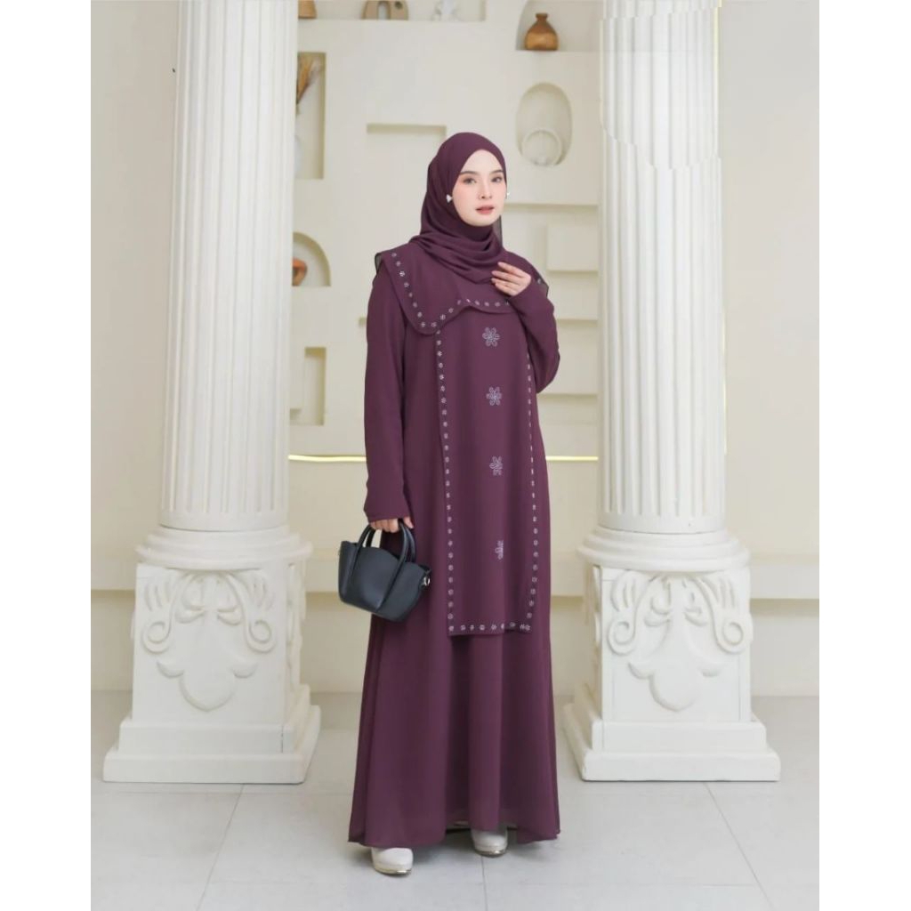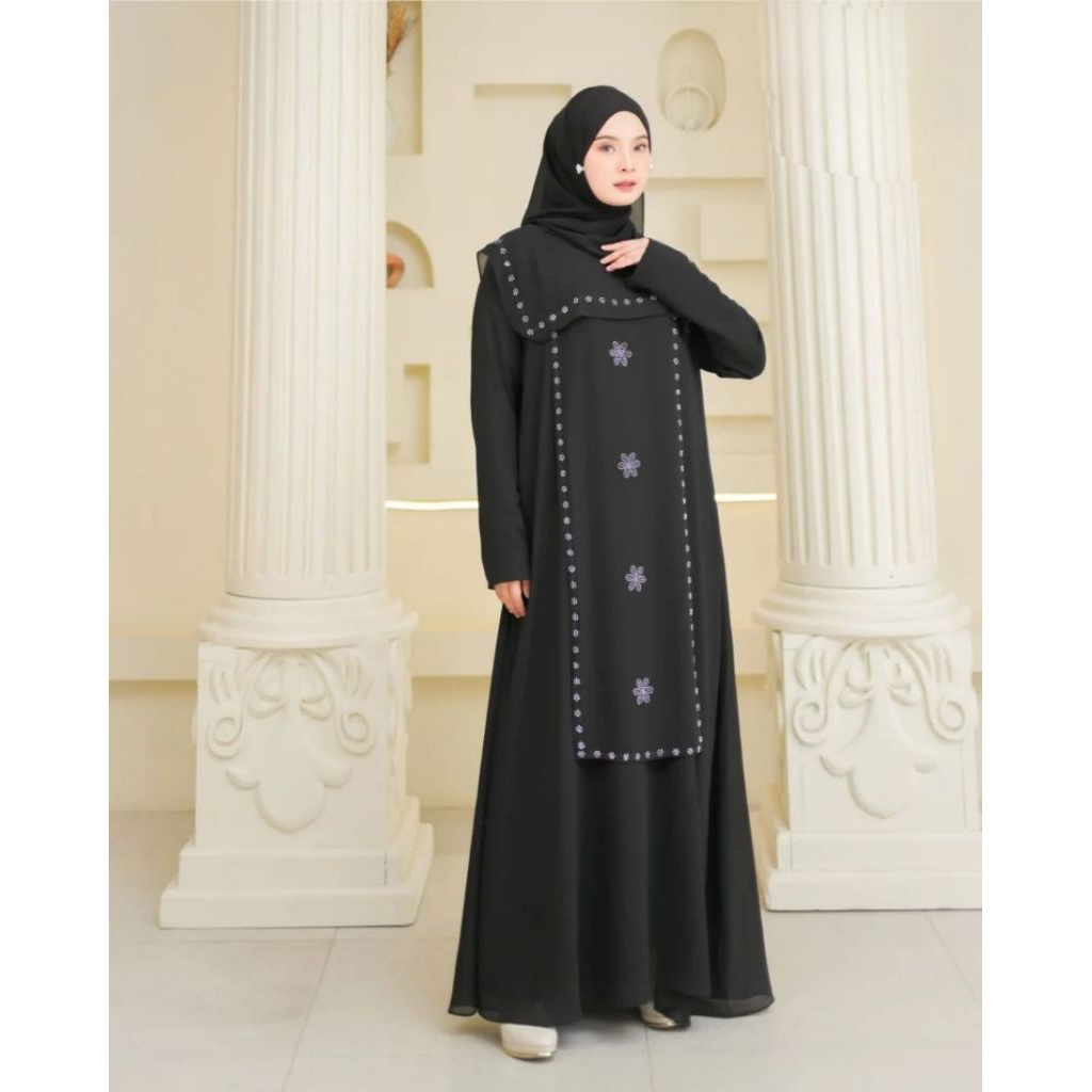 Abaya Lebaran Terbaru 2026 Rahima Abaya Ceruty Babydoll Mix Swarovski Abaya Hitam Mewah Elegan