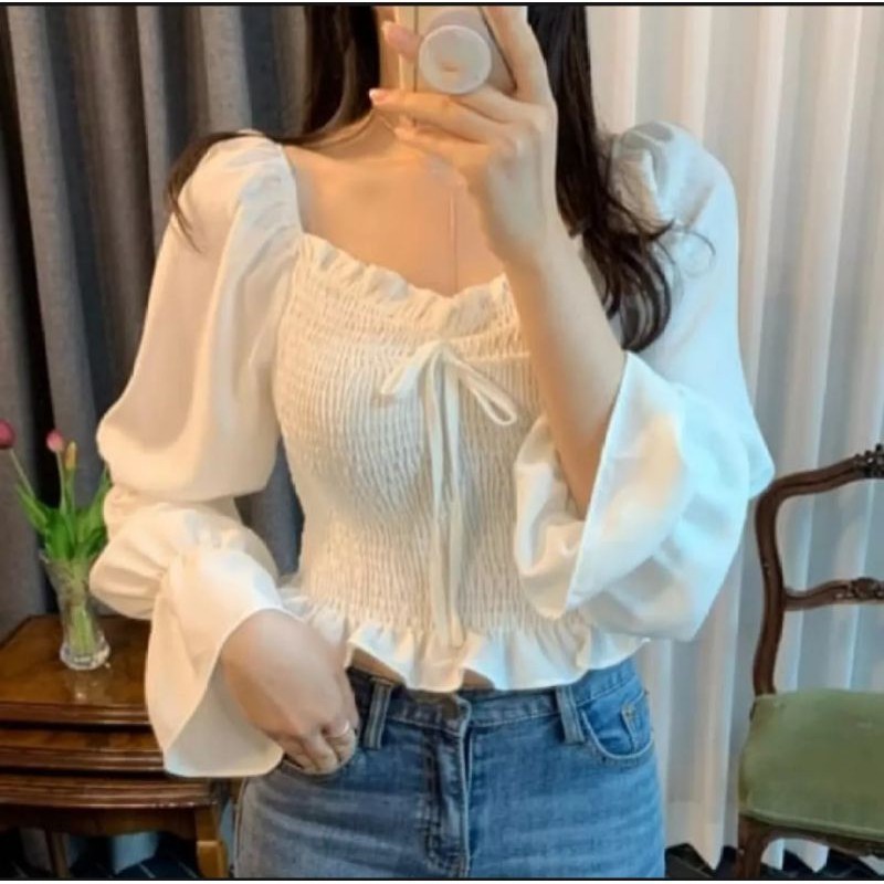 AZARIN Blouse Baju Sabrina Wanita SIZE S-4L /BAJU ATASAN WANITA SABRINA BIG SIZE /ATASAN WANITA SERUT LENGAN PANJANG