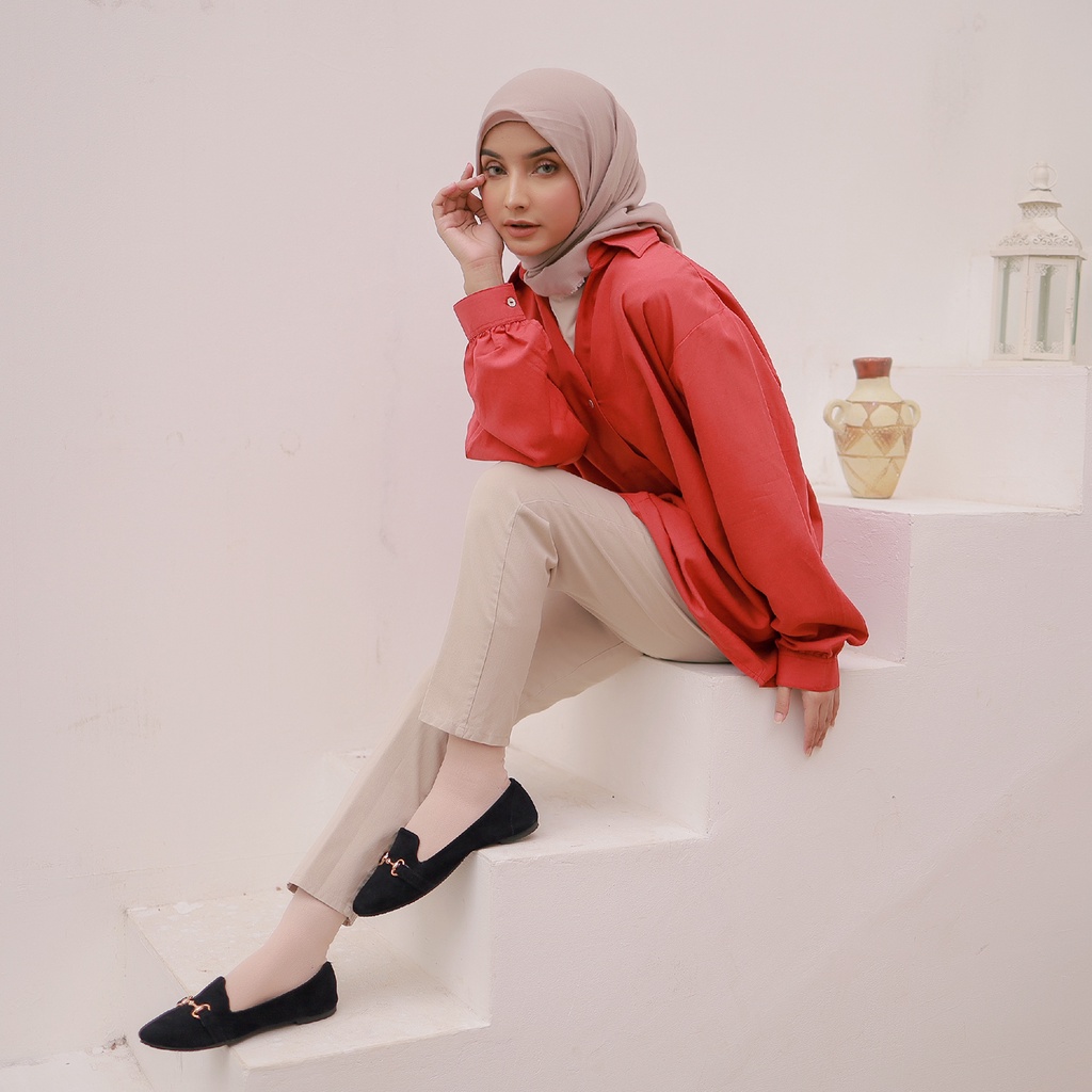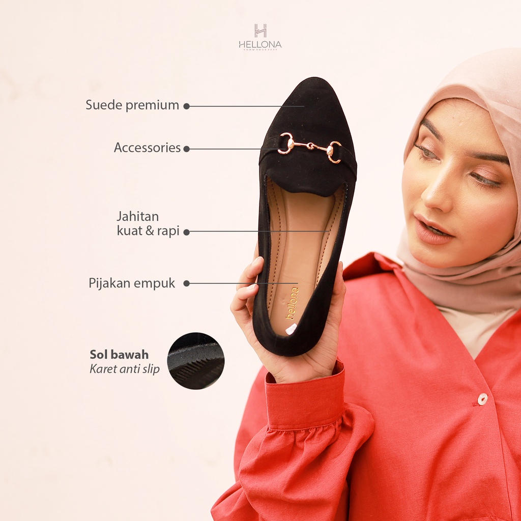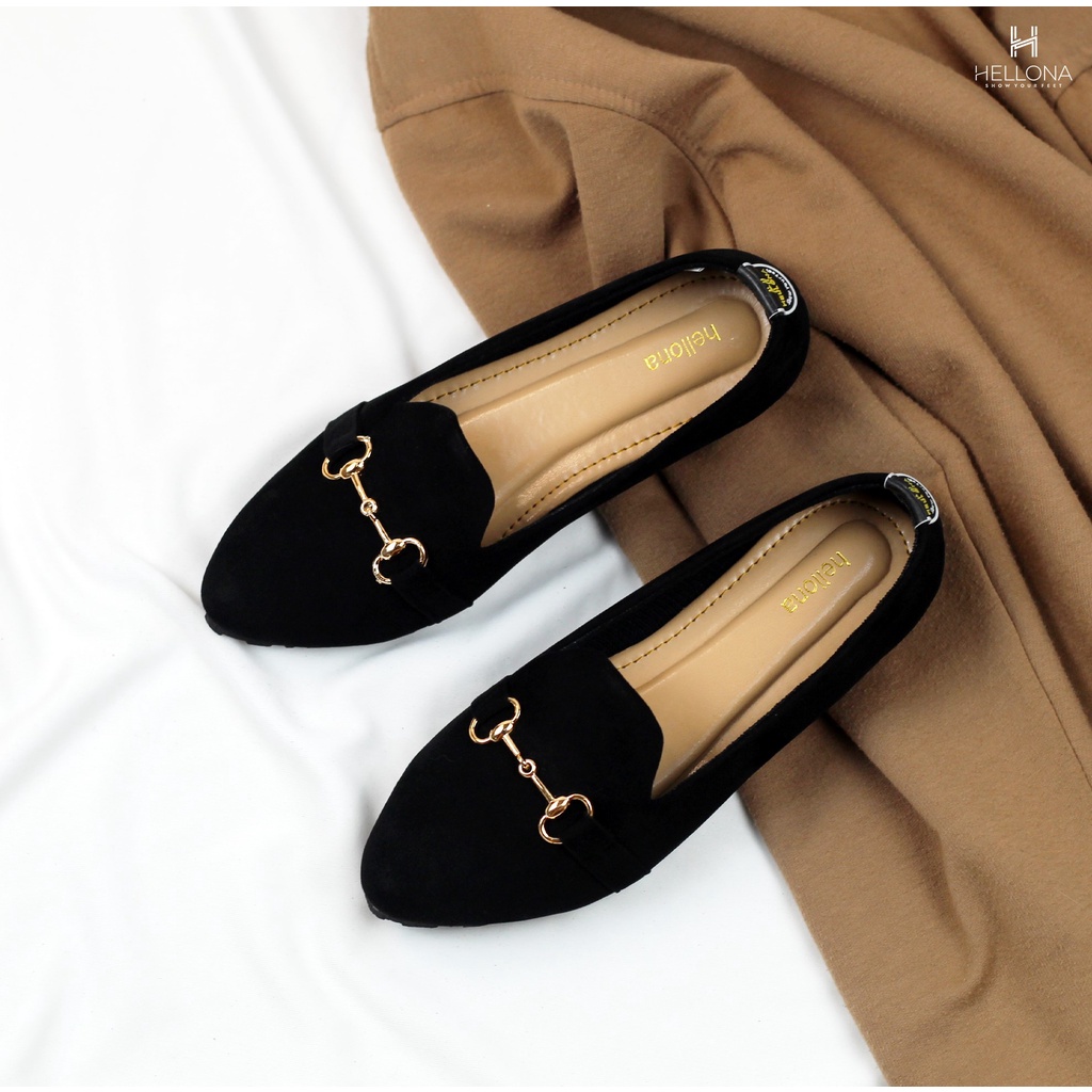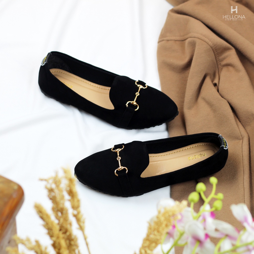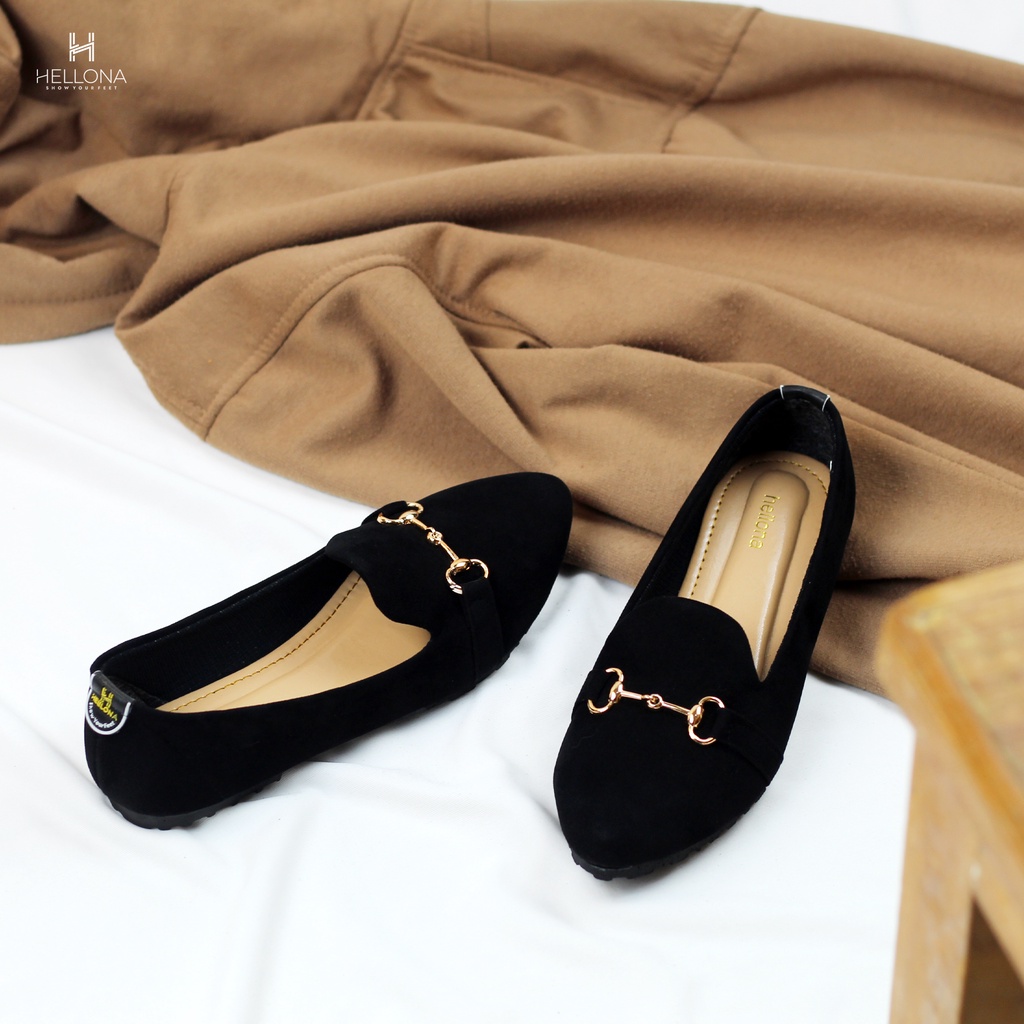 Hellona Ayana Flatshoes Wanita Desain Simpel Warna Black