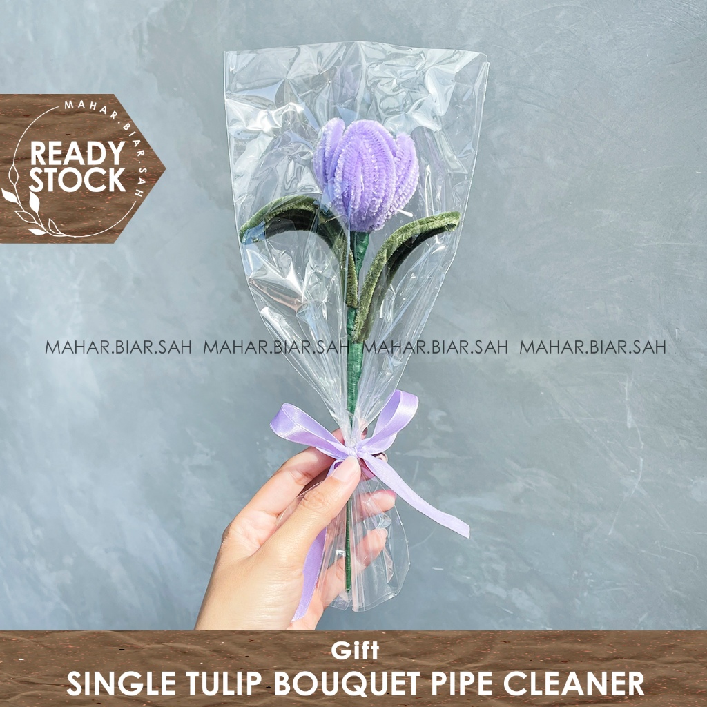 RS Single TULIP MEKAR Bouquet Pipe Cleaner / Fuzzy Wire / Velvet Wire / Valentine day / Gift / Flowes Bouquet / Buket Bunga / Kado / Floral handbag / Bunga Pipe Cleaner