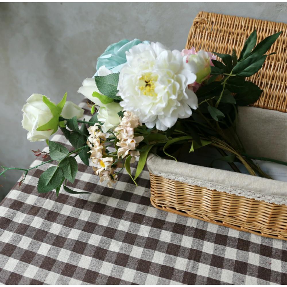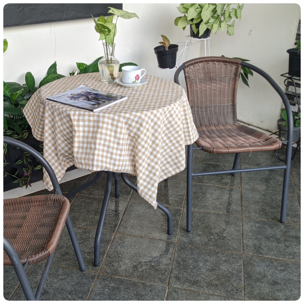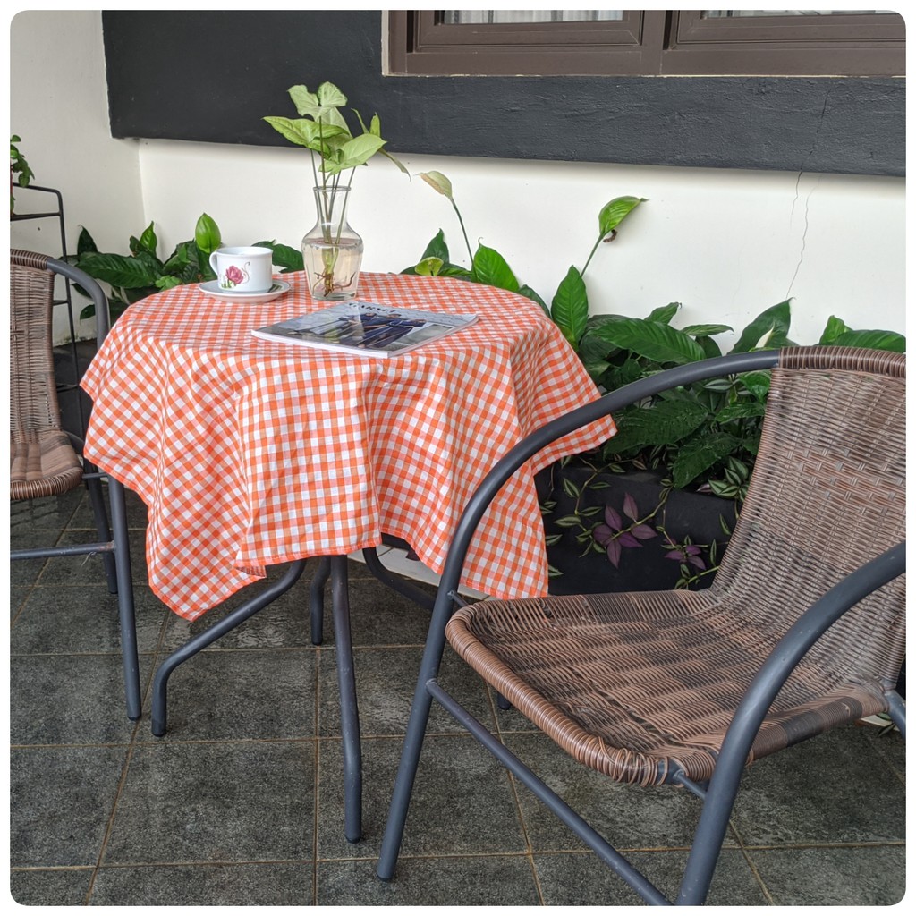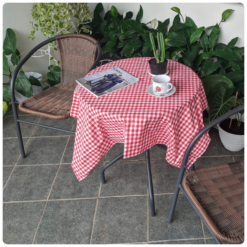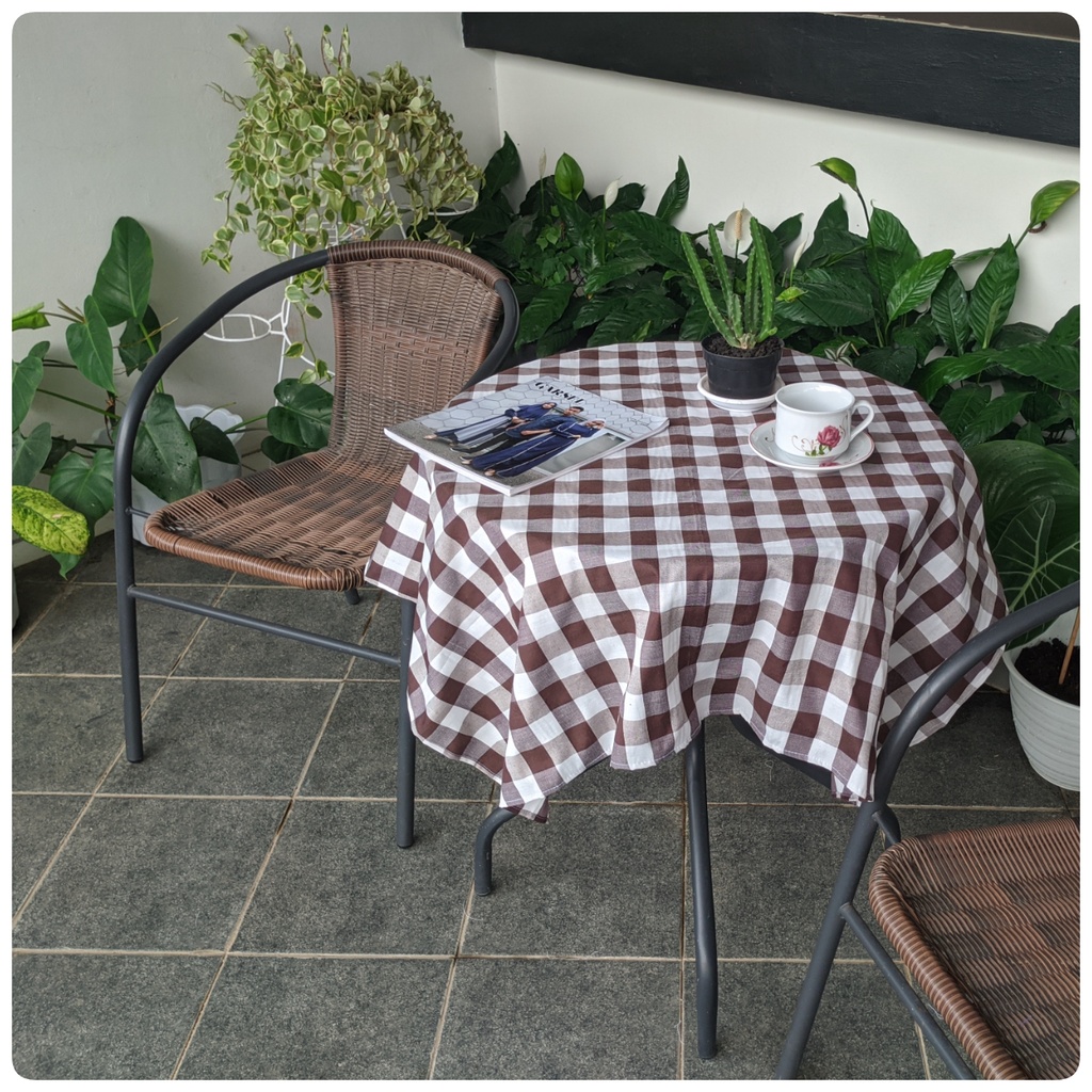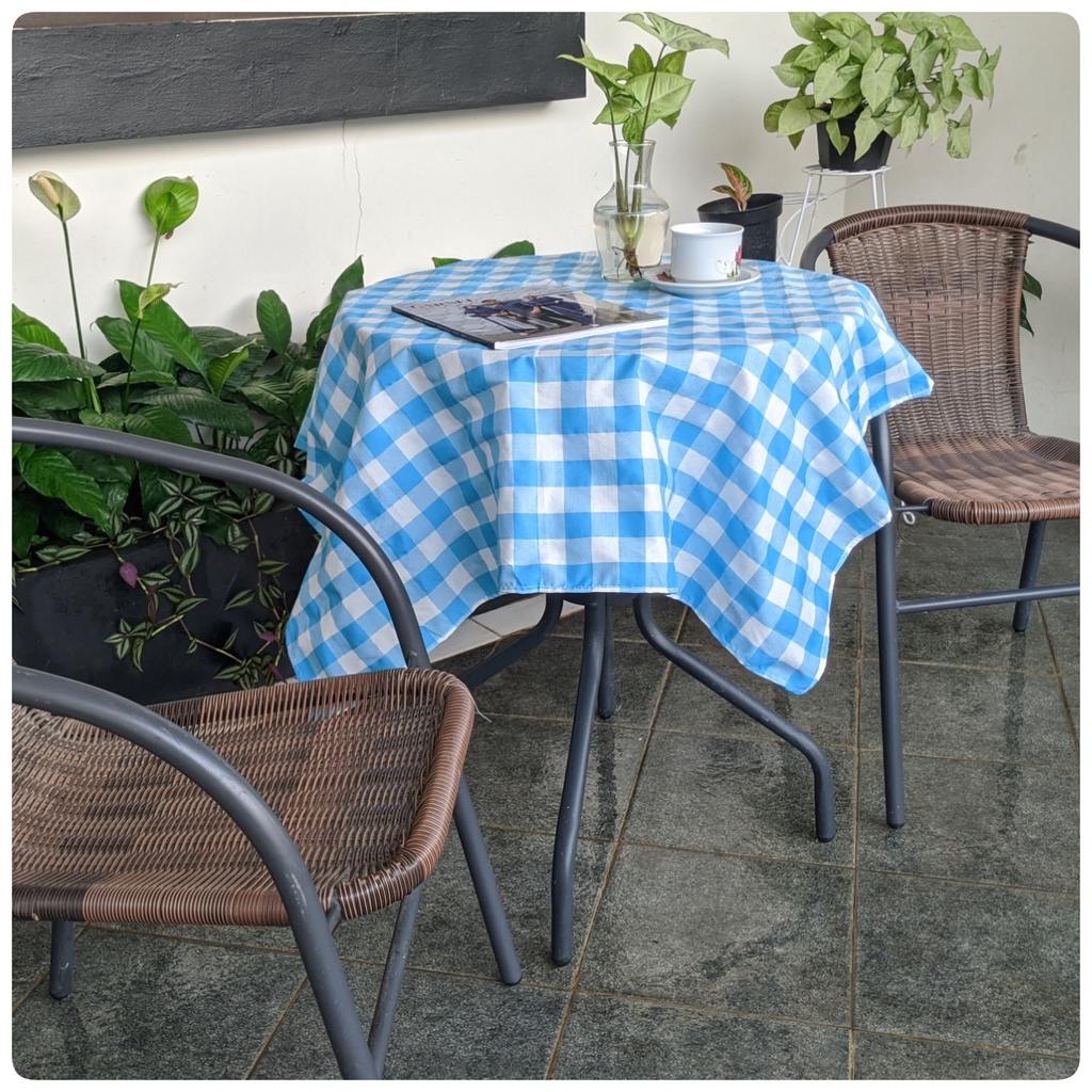 Taplak Meja Estetik Kekinian Motif Kotak-kotak Bahan Katun Ukuran Kecil Sedang Persegi dan Persegi Panjang Murah
