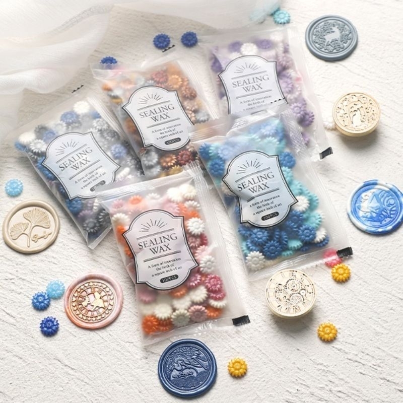 GAEKOPEDIA || 100pcs Lilin Stempel Segel Bentuk Bunga Matahari Warna Campur / Mixed Color Sealing Wax Stamp Beads