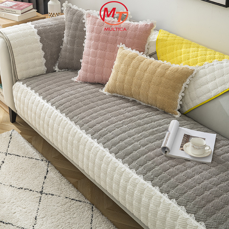 Multica Home Official Cover Sofa polos Bulu Mewah Sarung Sofa Sudut Warna Solid Cool Colour