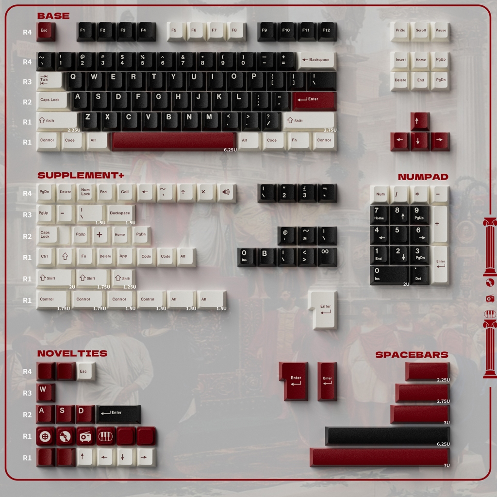 Taptempo Rome keycap cherry Profile PBT double shot keycap set untuk Keyboard Mechanical