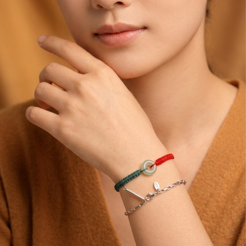 Gelang Giok Yin Yang Keberuntungan & Panjang Umur Tali Merah Hijau - Bracelets Aksesoris Pria Wanita Batu Jade