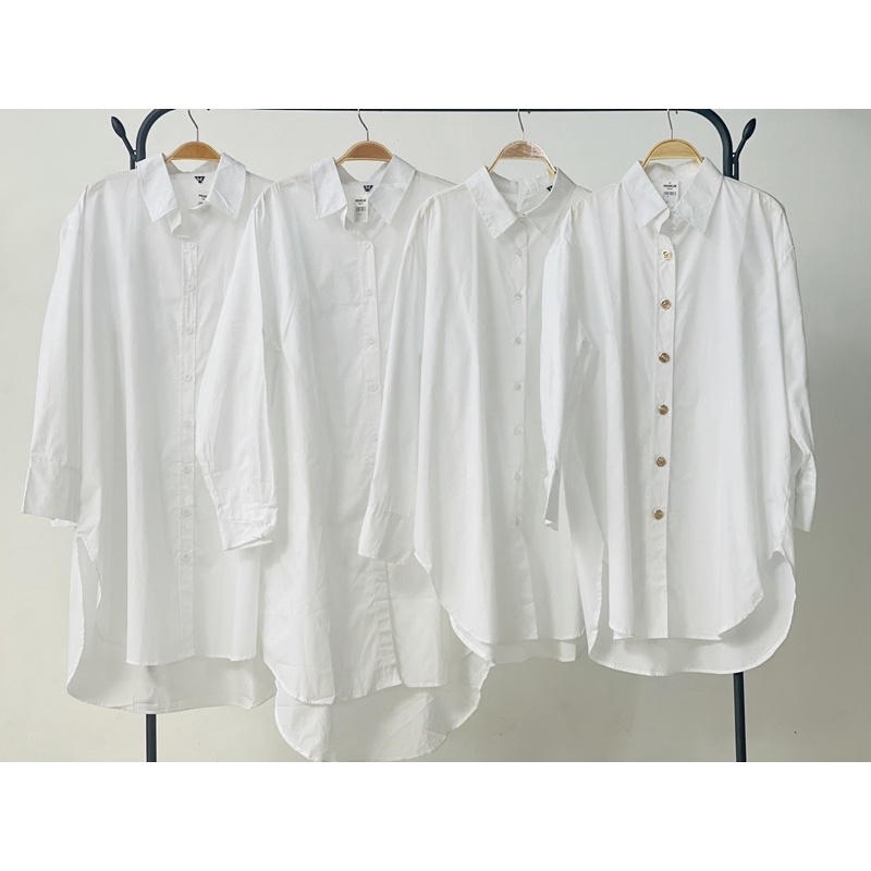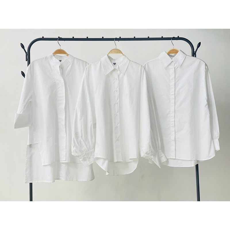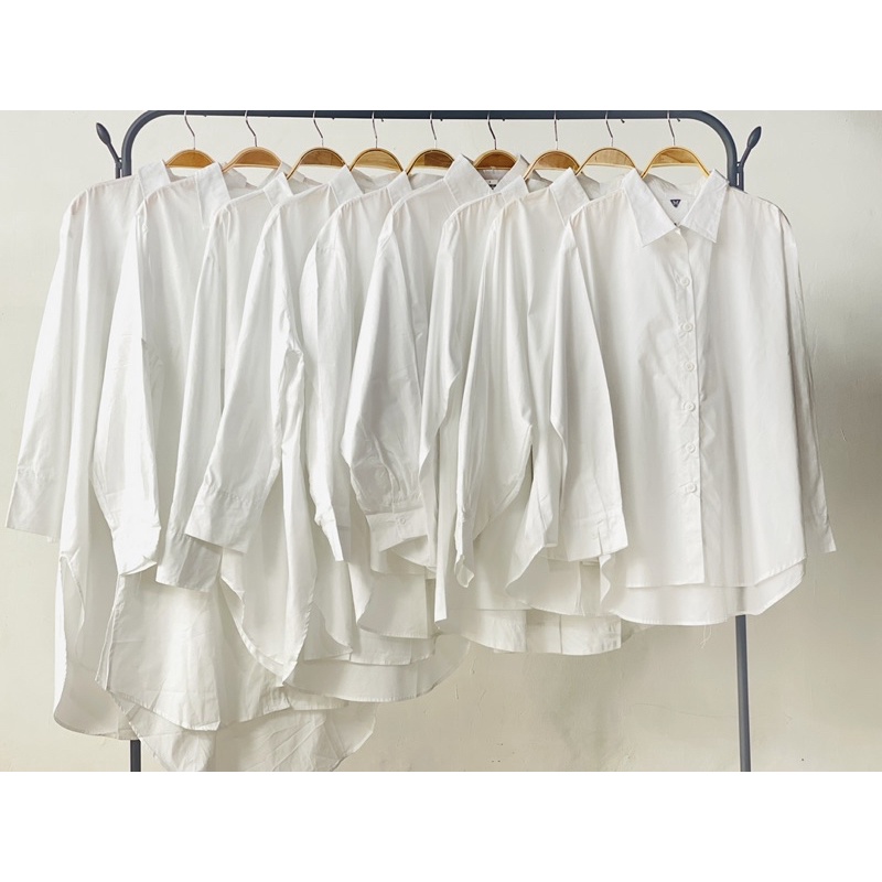 kemeja white series boyfriend shirt longtop tunik oversize XL~XXL katun poplin cotton basic shirt putih