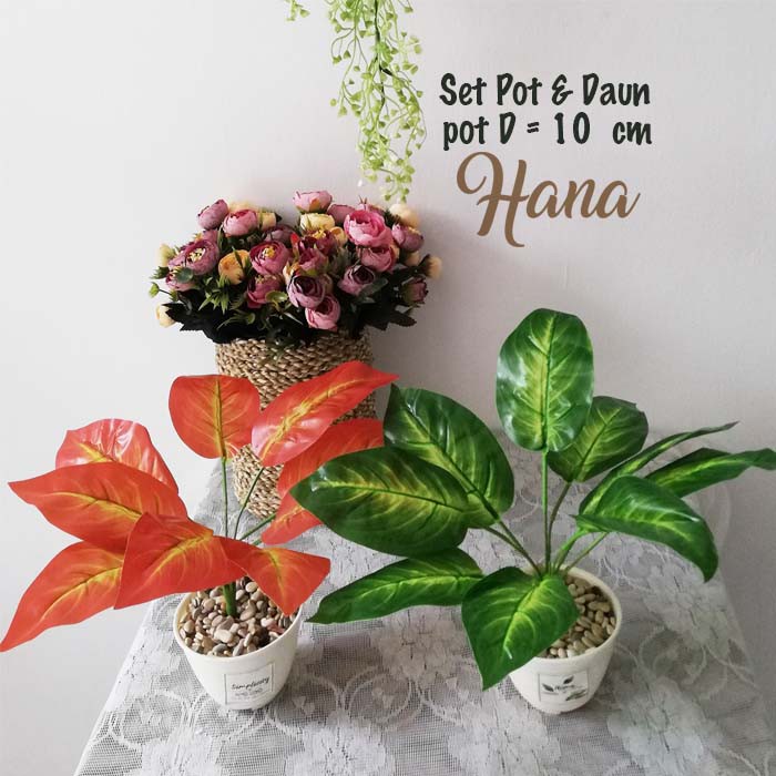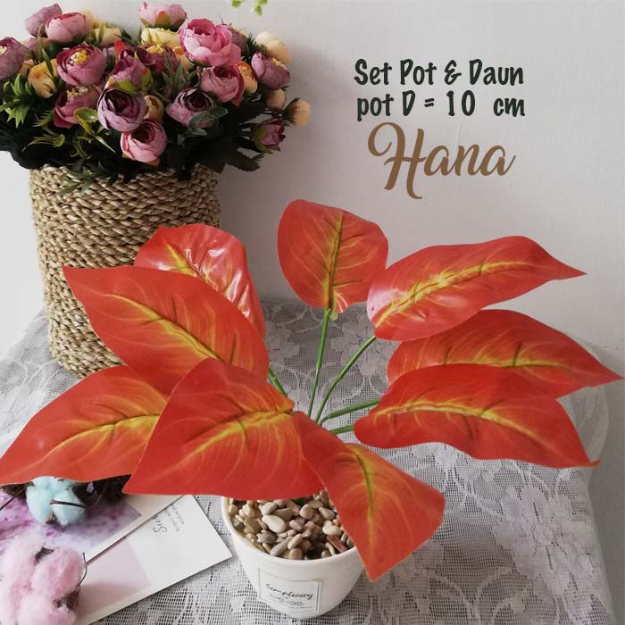 daun magnolia plastik/set pot daun plastik bunga plastik