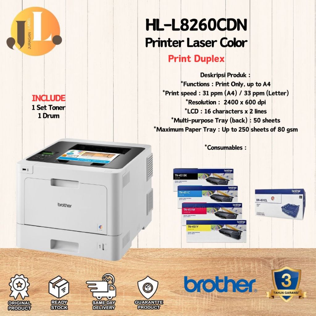 Printer Brother HL-L8260CDN Laser Color A4 Duplex Network Garansi Resmi