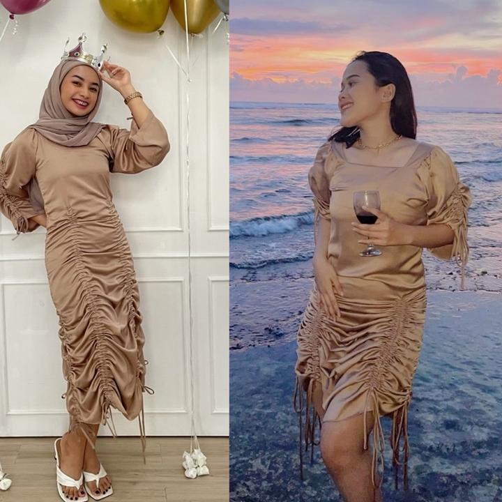 Terpercaya Glamour Dress / Prom Dress / Birthday Dress / New year Dress / Satin Dress / Dress pantai / Dress Pesta