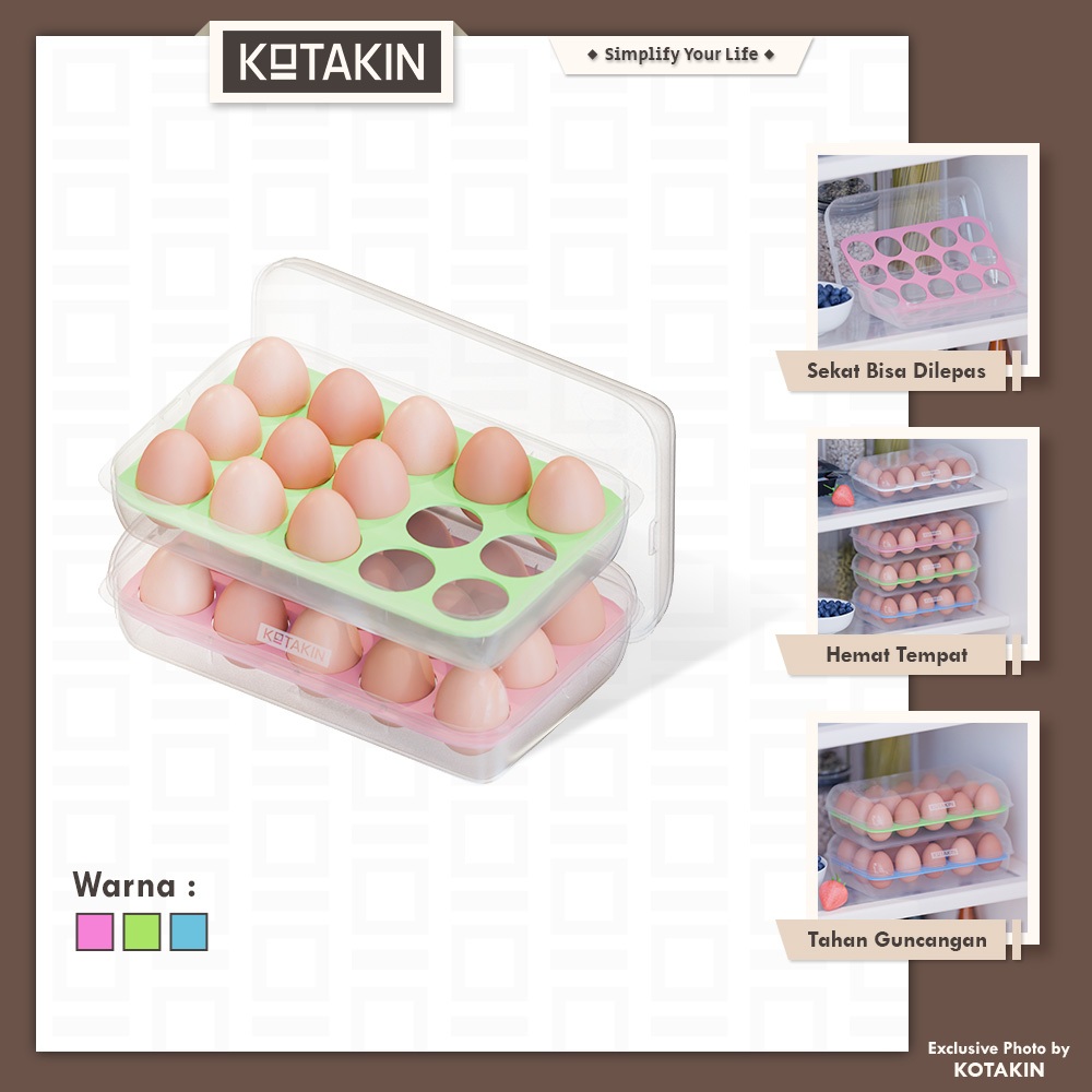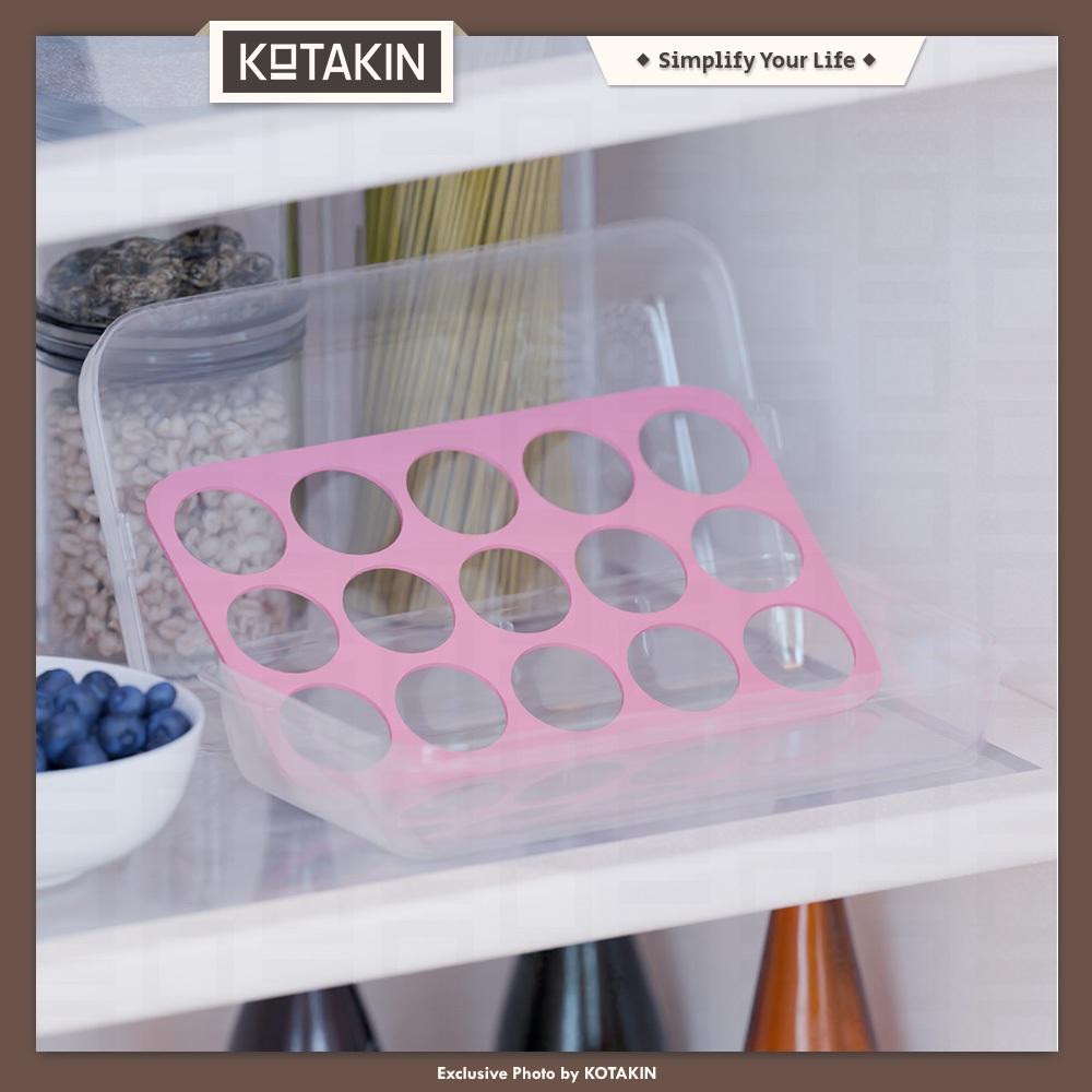 KOTAKIN Box Telur 15 Lubang Sekat Tempat Penyimpanan Kotak Telor Kulkas Box Organizer Dapur