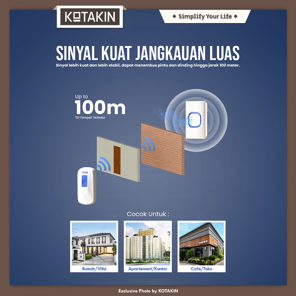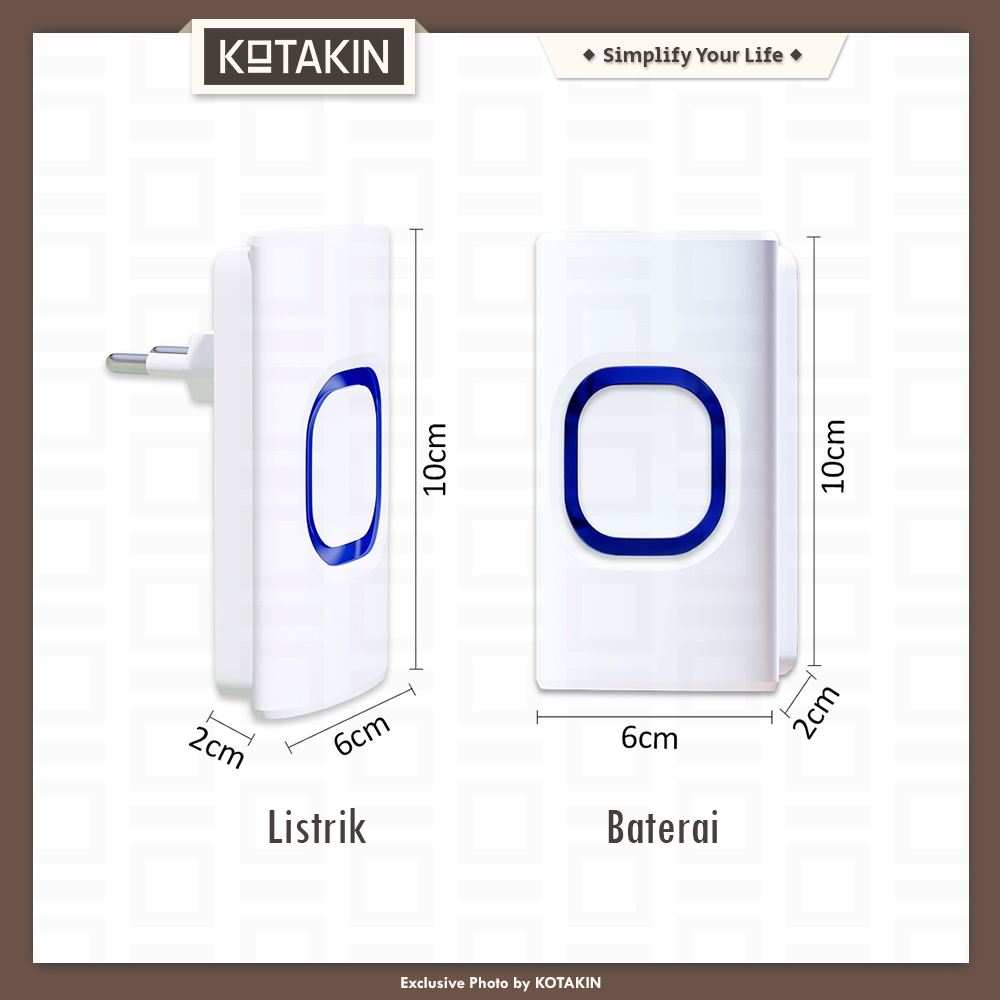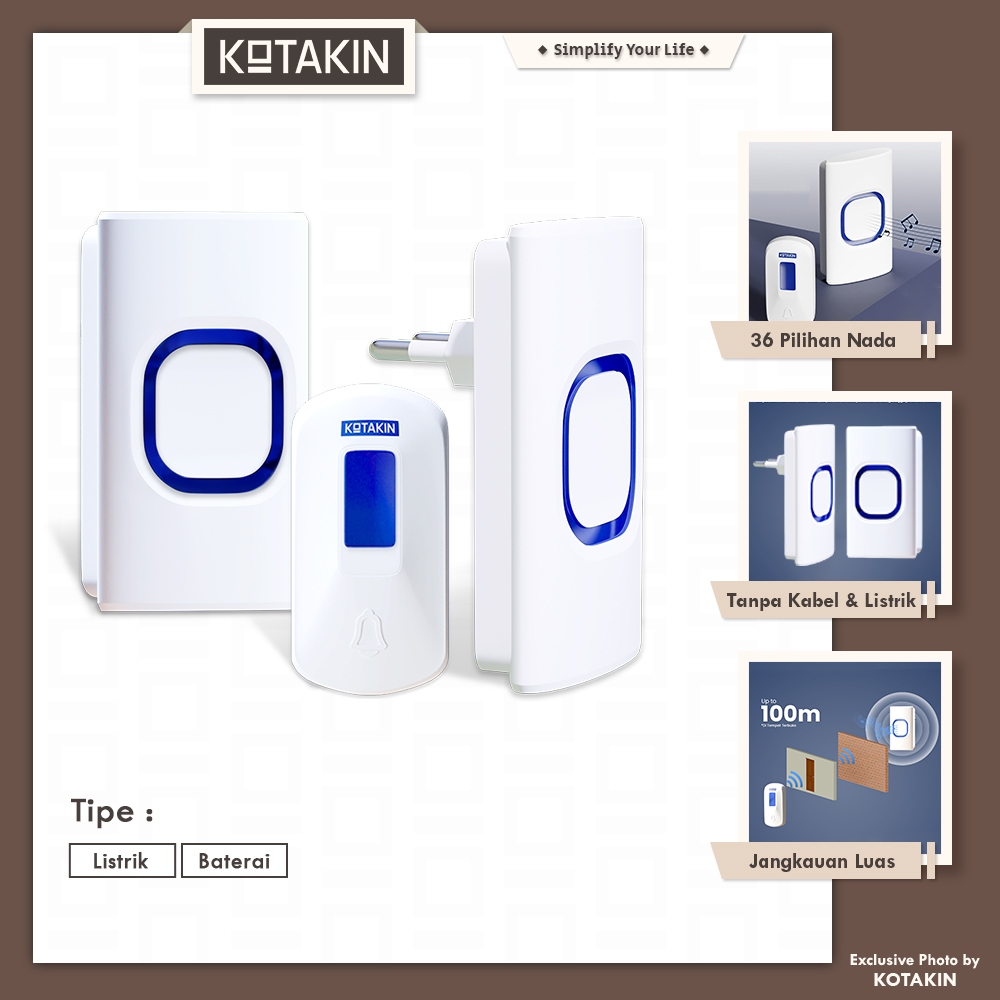 KOTAKIN Bel Rumah Wireless Tanpa Kabel Bunyi Assalamualaikum Suara Nyaring Anti Air Outdoor Merek KOTAKIN