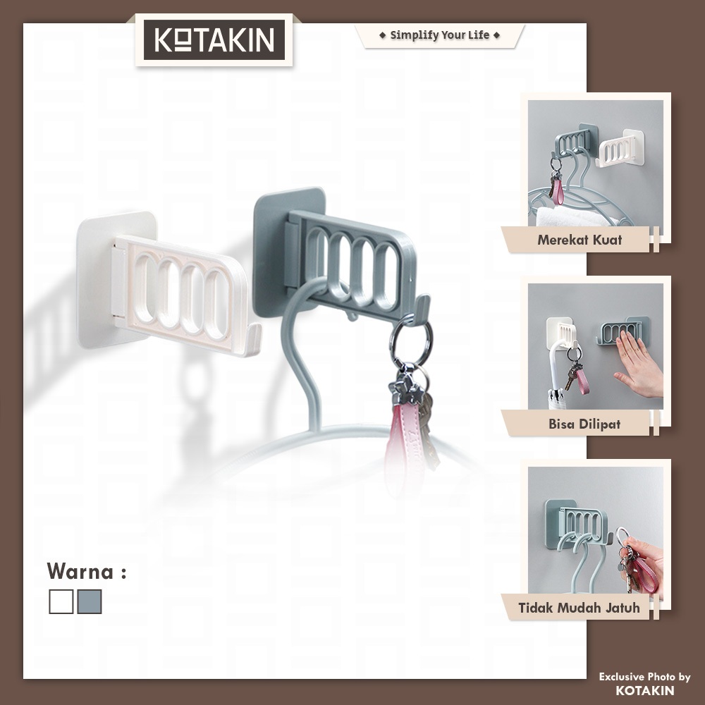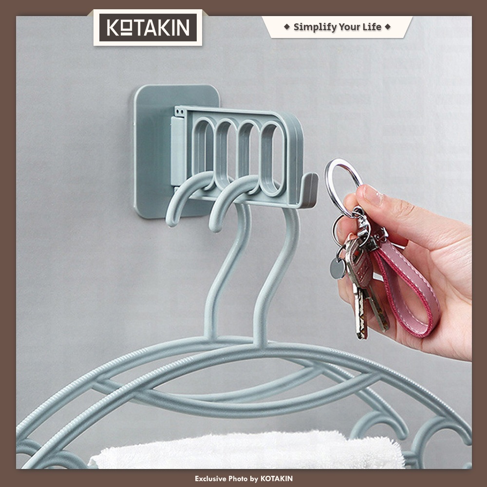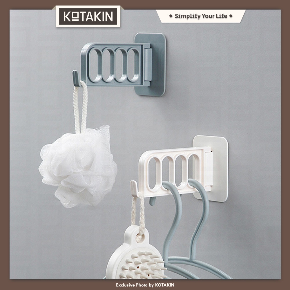 KOTAKIN Gantungan Hanger Baju Lipat Dinding Tempel 4 Lubang Hook Jemuran Multifungsi