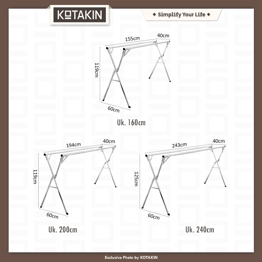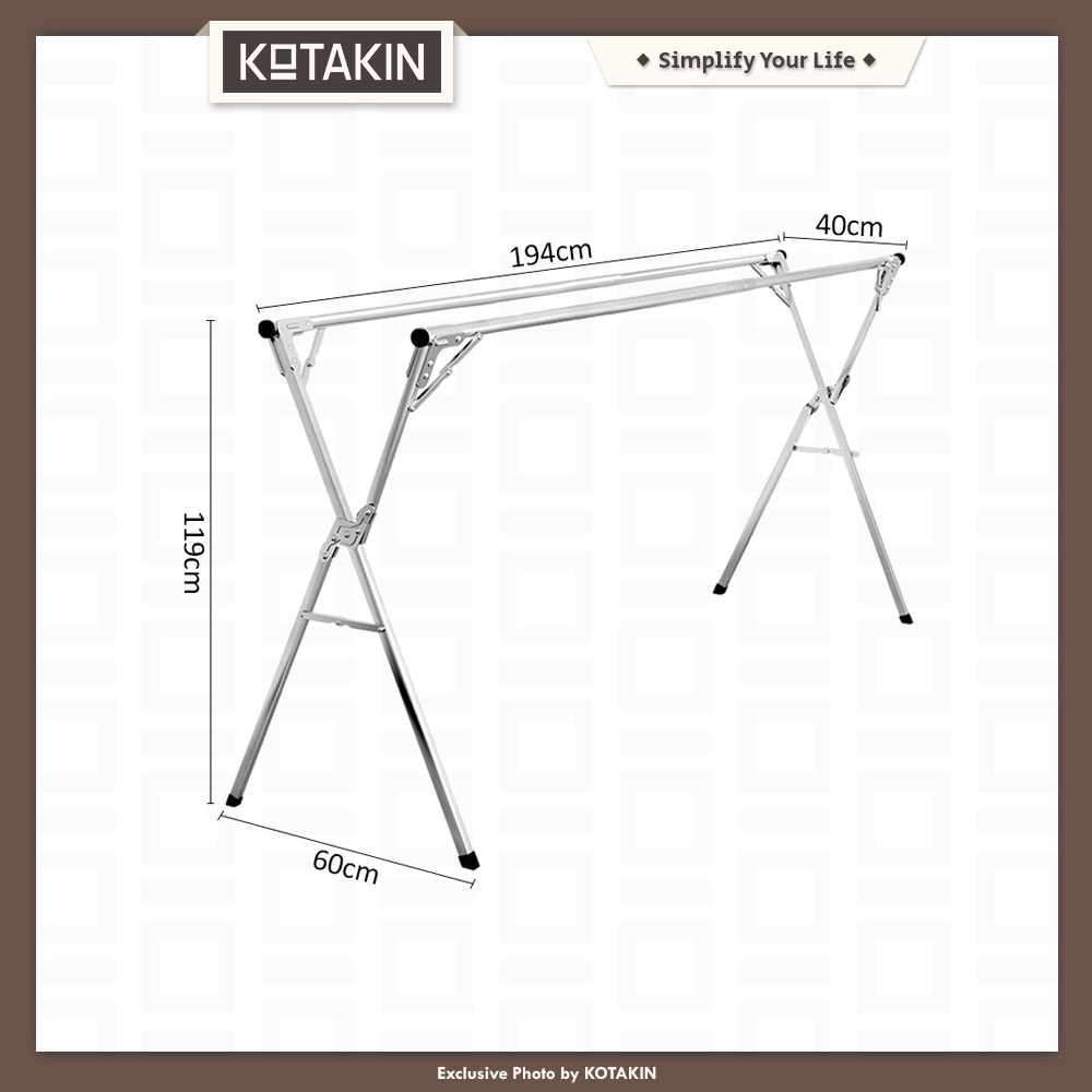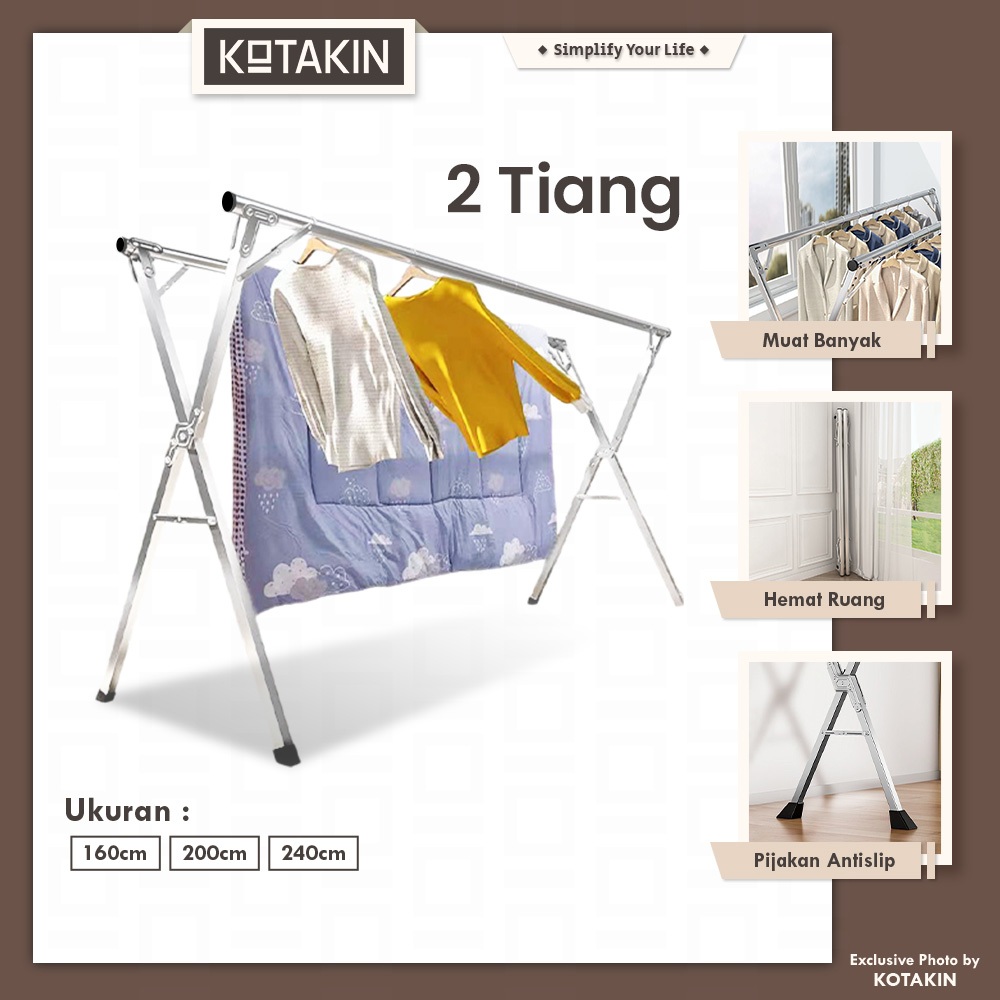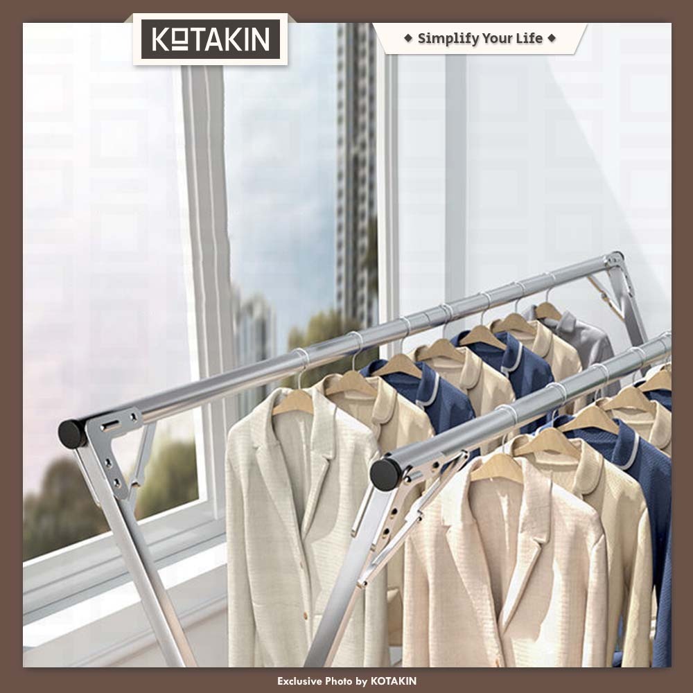 KOTAKIN Jemuran Baju Handuk Lipat Gantungan Pakaian Celana Tekuk Outin Stainless Anti Karat Merek