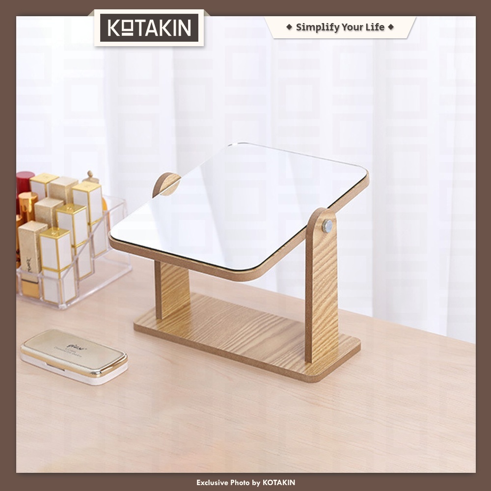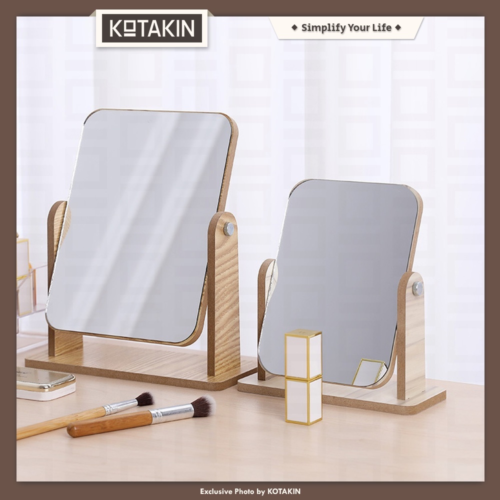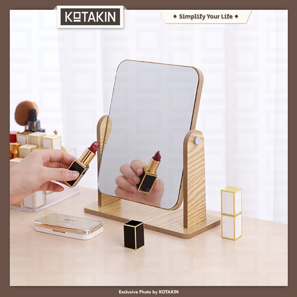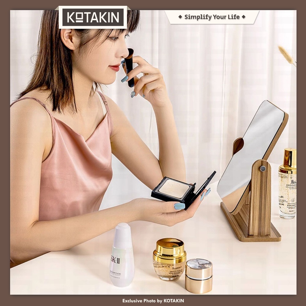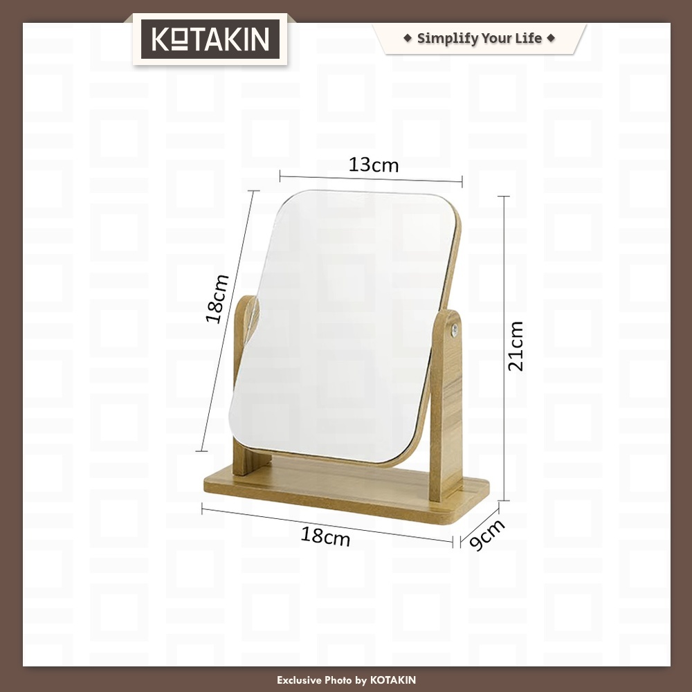 KOTAKIN Kaca Cermin Rias Kayu Aesthetic Persegi Putar 360 Derajat Foldable Standing Rotate MIrror Make Up