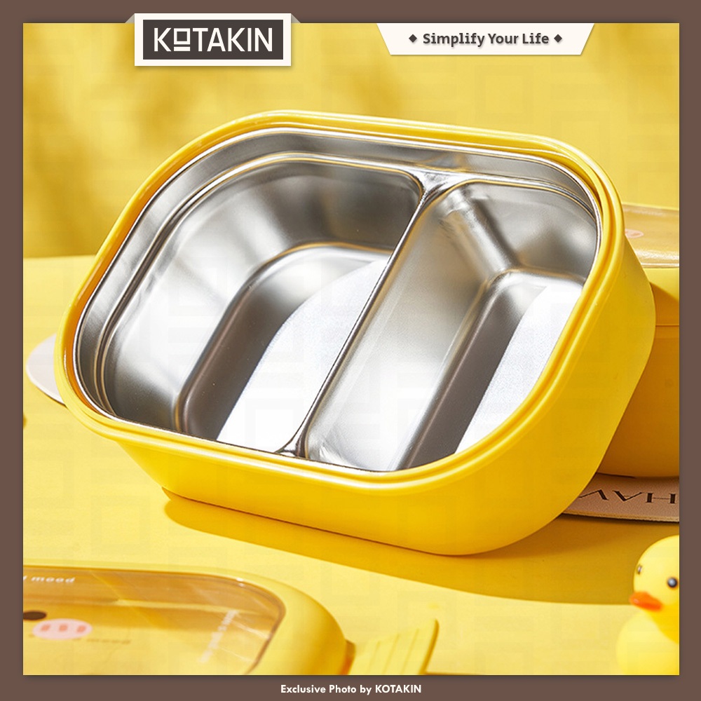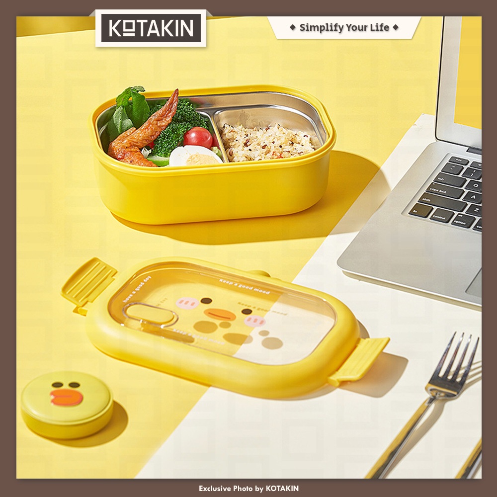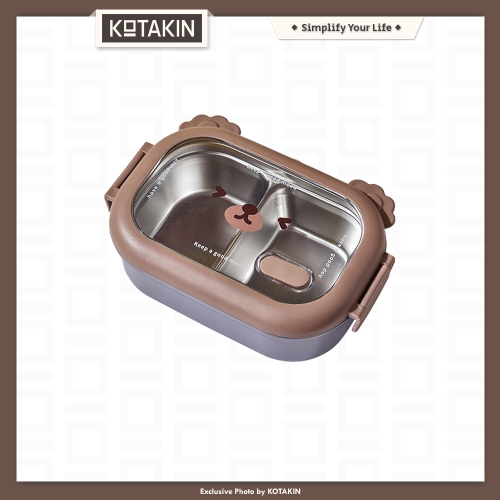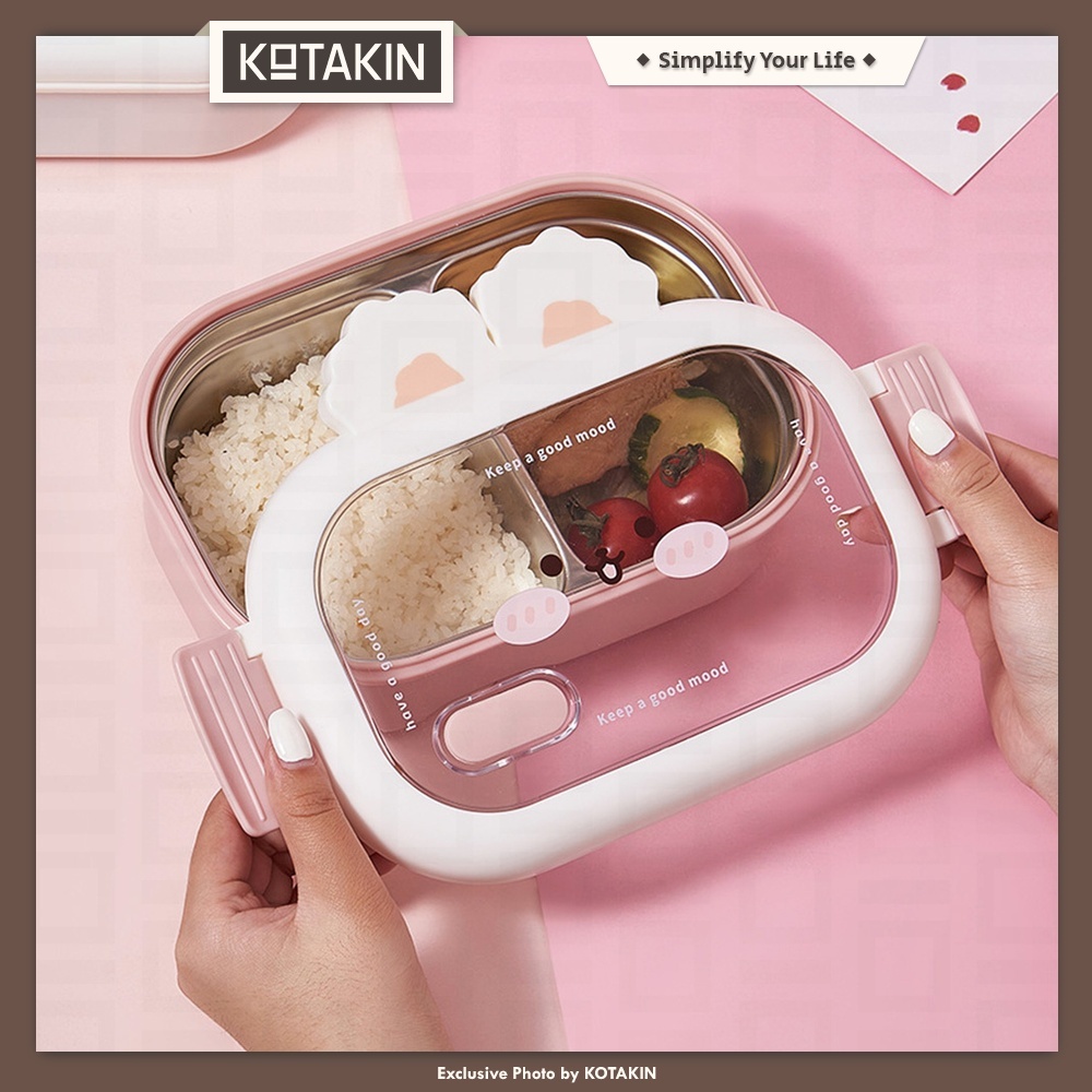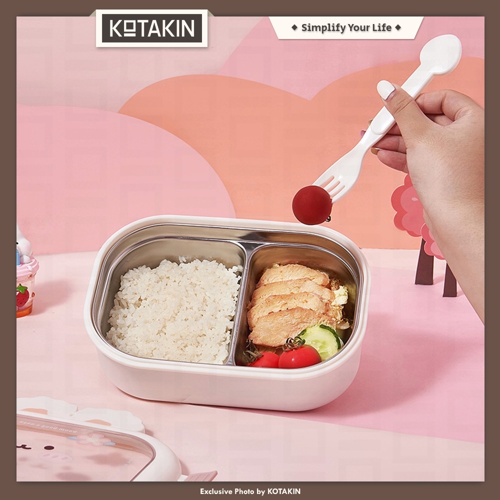 KOTAKIN Kotak Makan Stainless Steel Lunch Box Wadah Bekal Tempat Bento Anak Sekolah Perempuan Laki-laki Karakter Lucu Kelinci Pink Bebek Beruang Korea Set Style Aesthetic