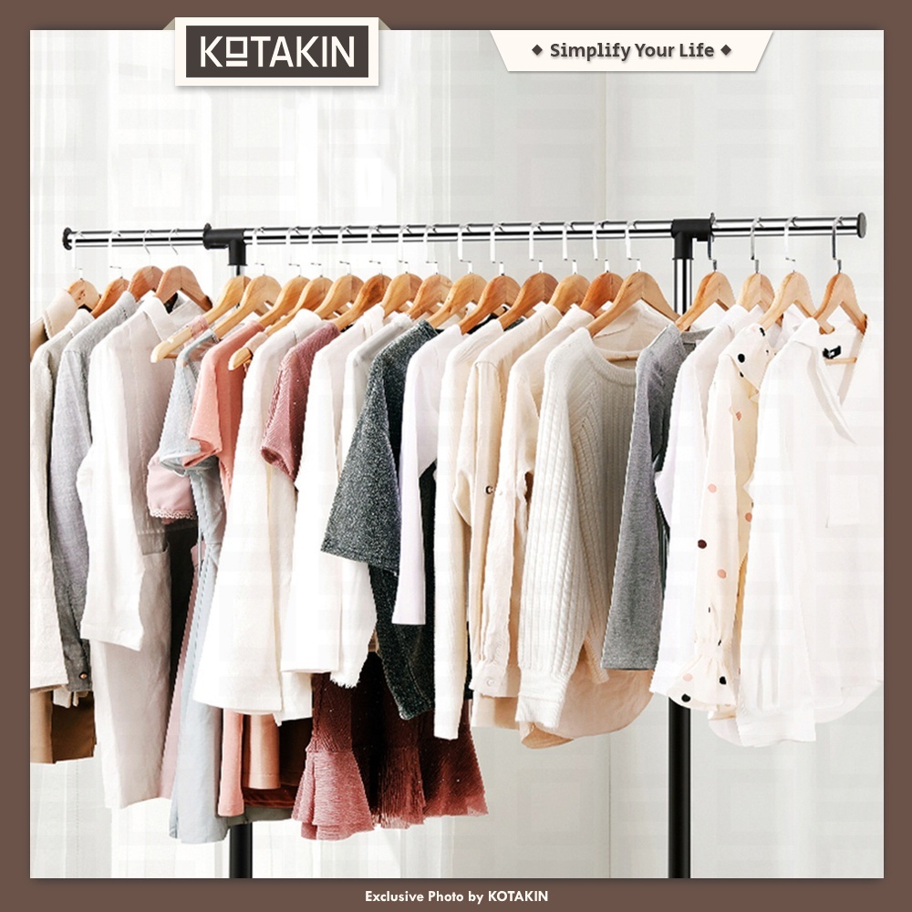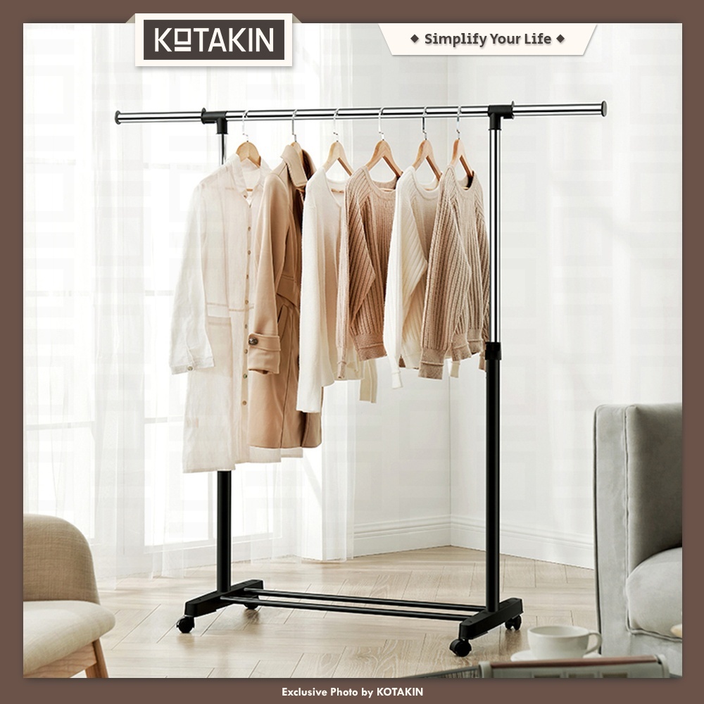 KOTAKIN Stand Hanger Gantungan Pakaian Gawang Baju Single Rak Display Serbaguna Roda Portable