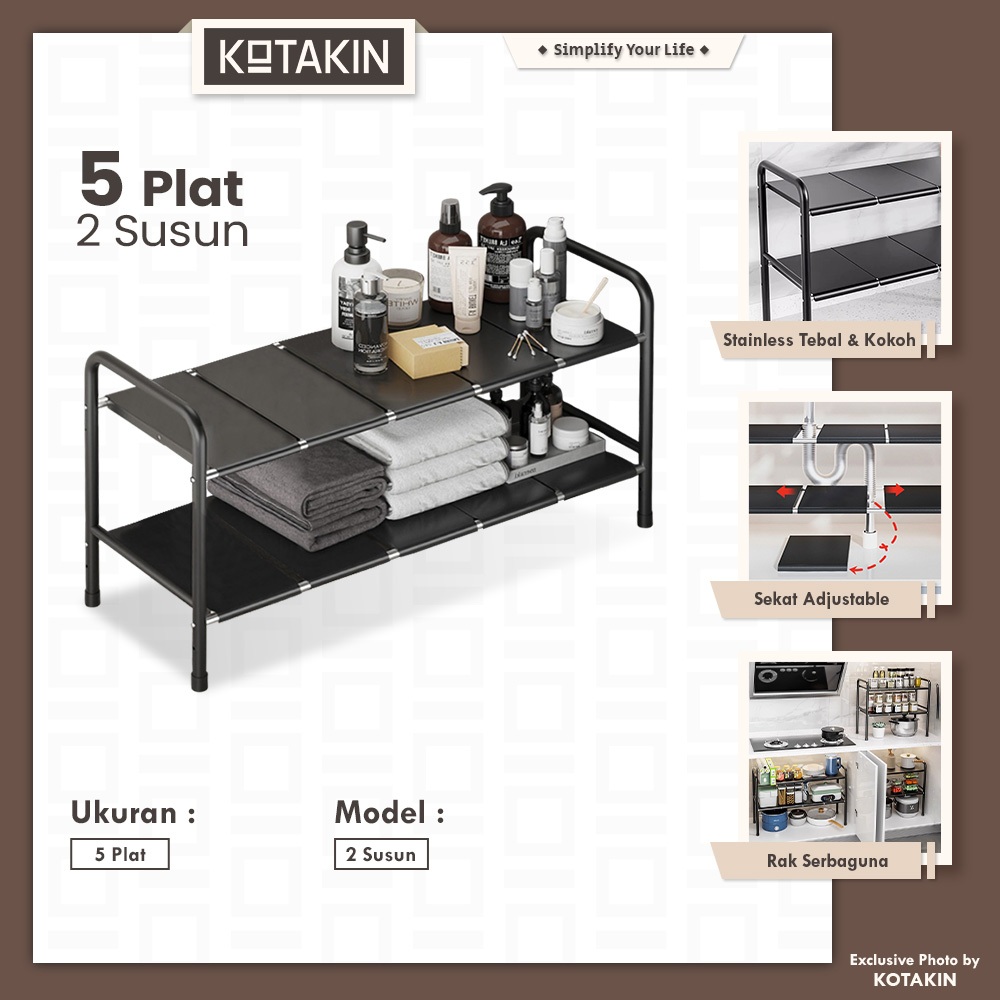 KOTAKIN Rak Bawah Wastafel 2 Susun Panjang Tempat Panci Periuk Wajan Sink Dapur Serbaguna