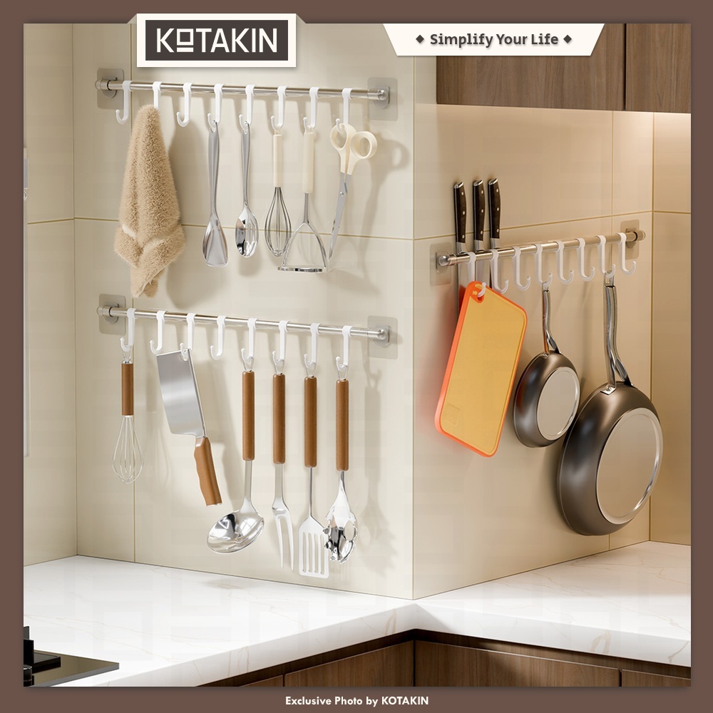 KOTAKIN Rak Gantung Tempel Dinding Cantolan Alat Dapur Kamar Mandi Baju Stainless Steel Tempat Serbet