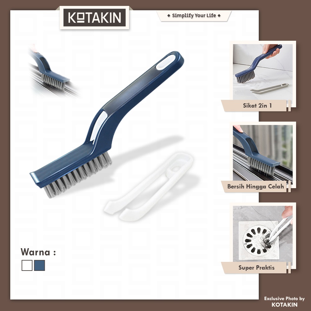 KOTAKIN Sikat 2in1 Celah Sudut Jendela Gagang Capit Alat Pembersih Lantai Kamar Mandi