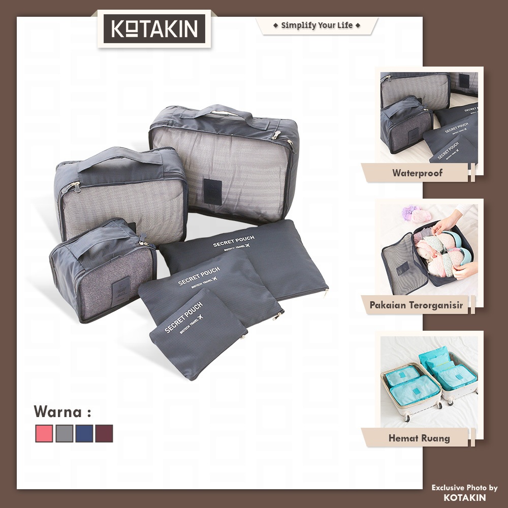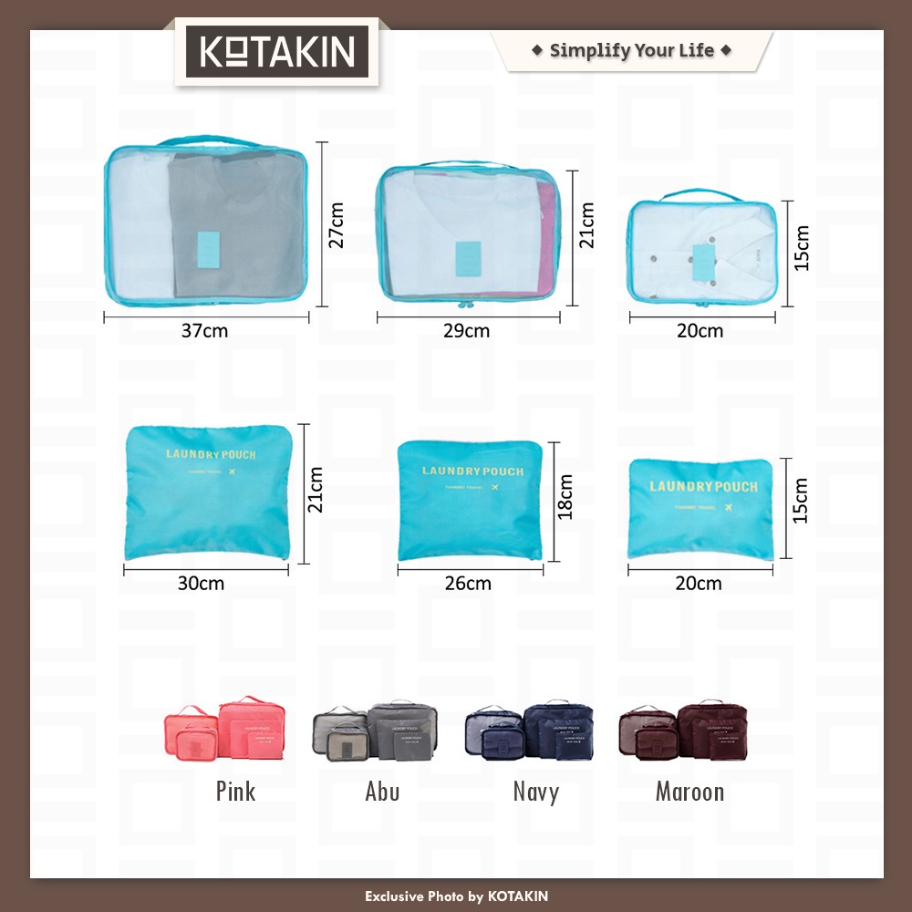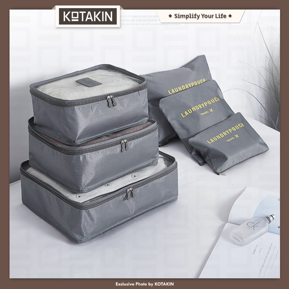 KOTAKIN Tas Koper 6 In 1 Traveling Bag Organizer Travel Luggage Storage Set Portable Skincare Kosmetik Penyimpanan Alat Mandi Perjalanan