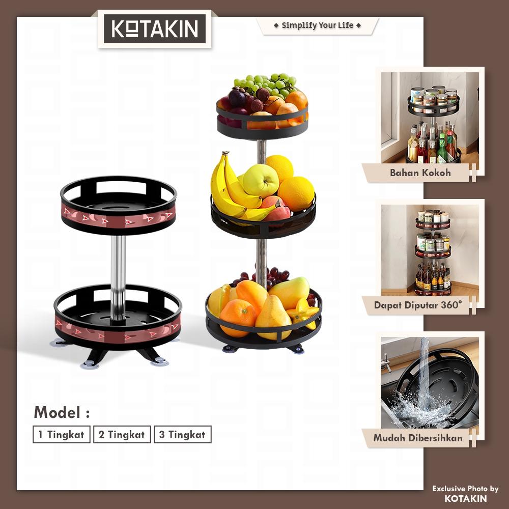 KOTAKIN Tray Buah Tempat Saji 1 2 3 Tingkat Putar Keranjang Buah Ruang Tamu Stainless Premium