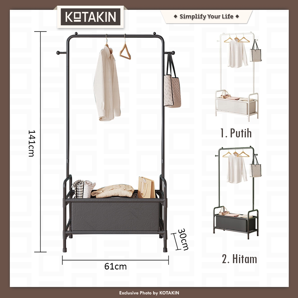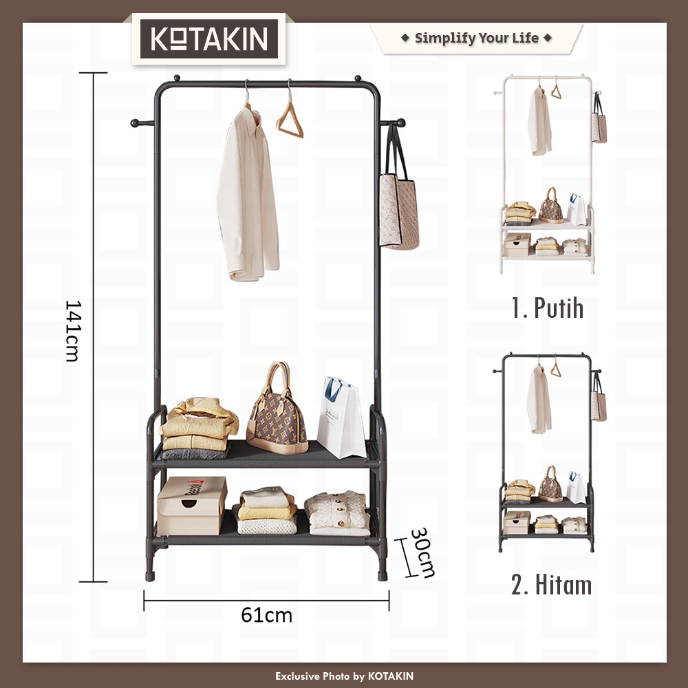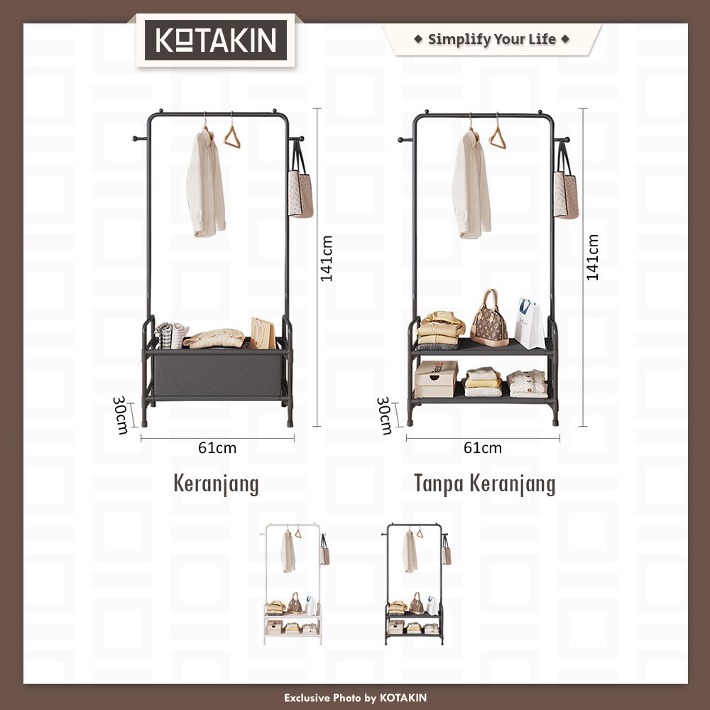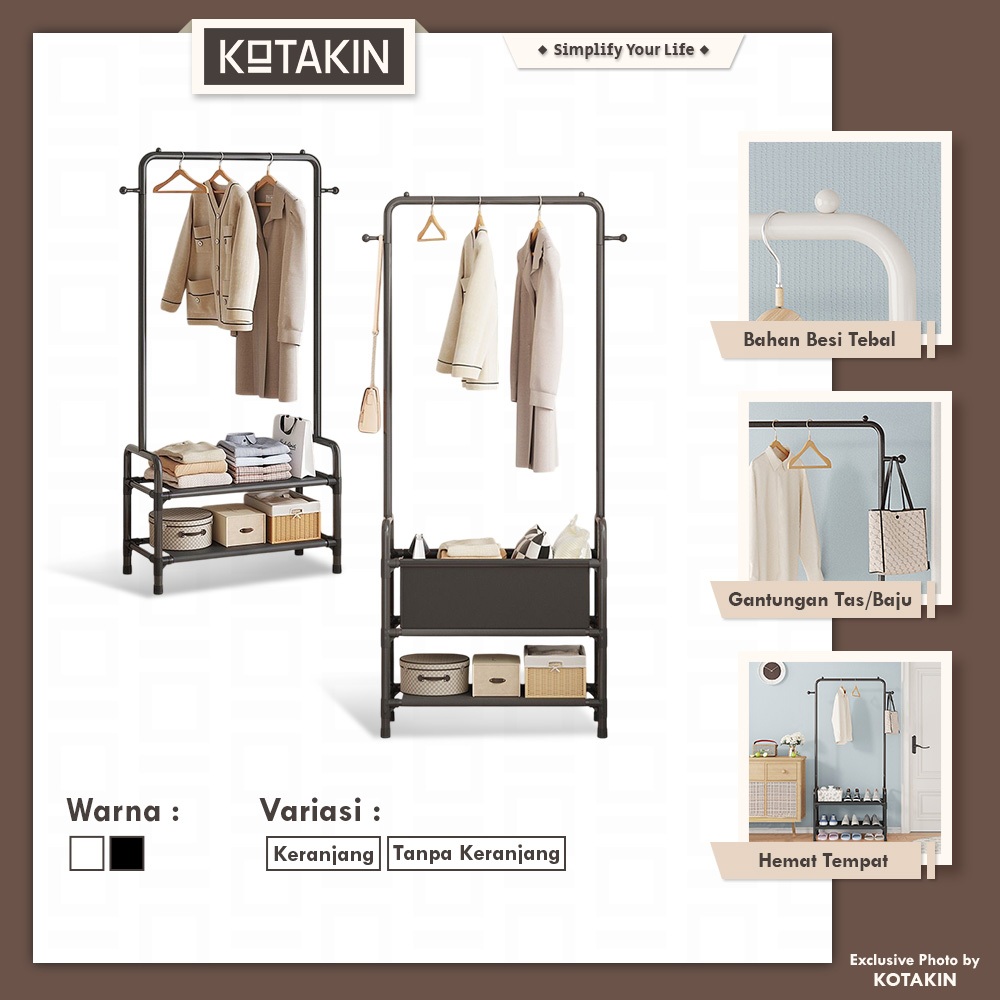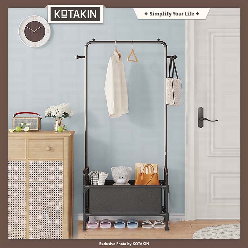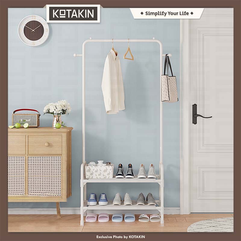 KOTAKIN Rak Baju Gantung Tempat Baju Pakaian Celana Rak Sepatu 2 Susun Keranjang Storage Serbaguna