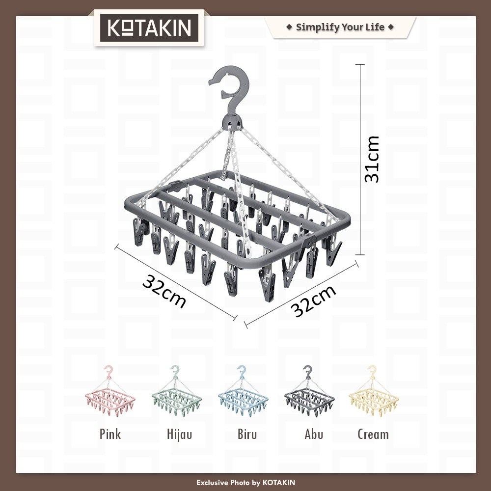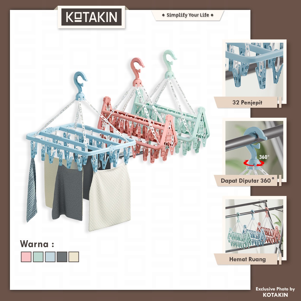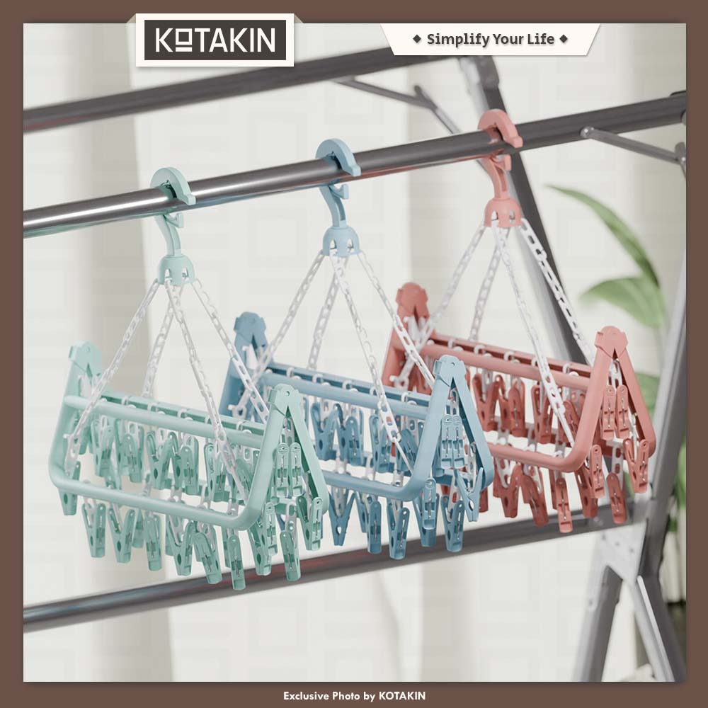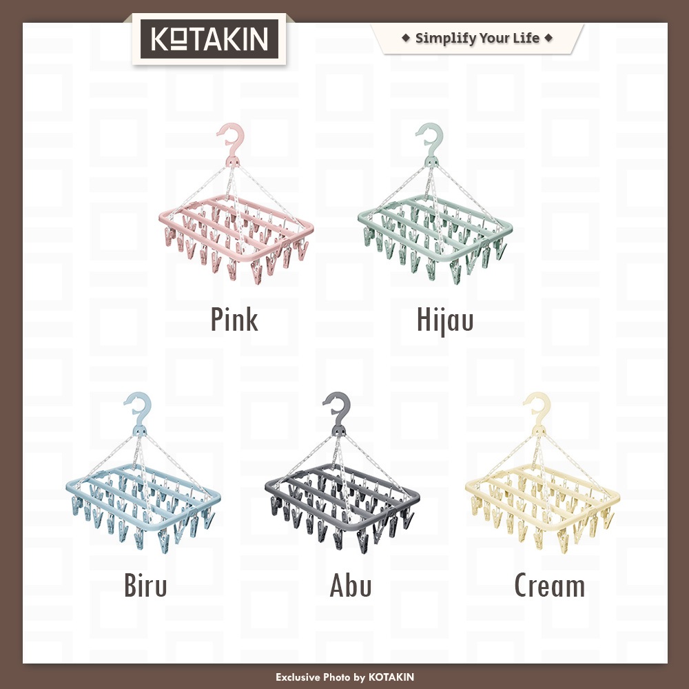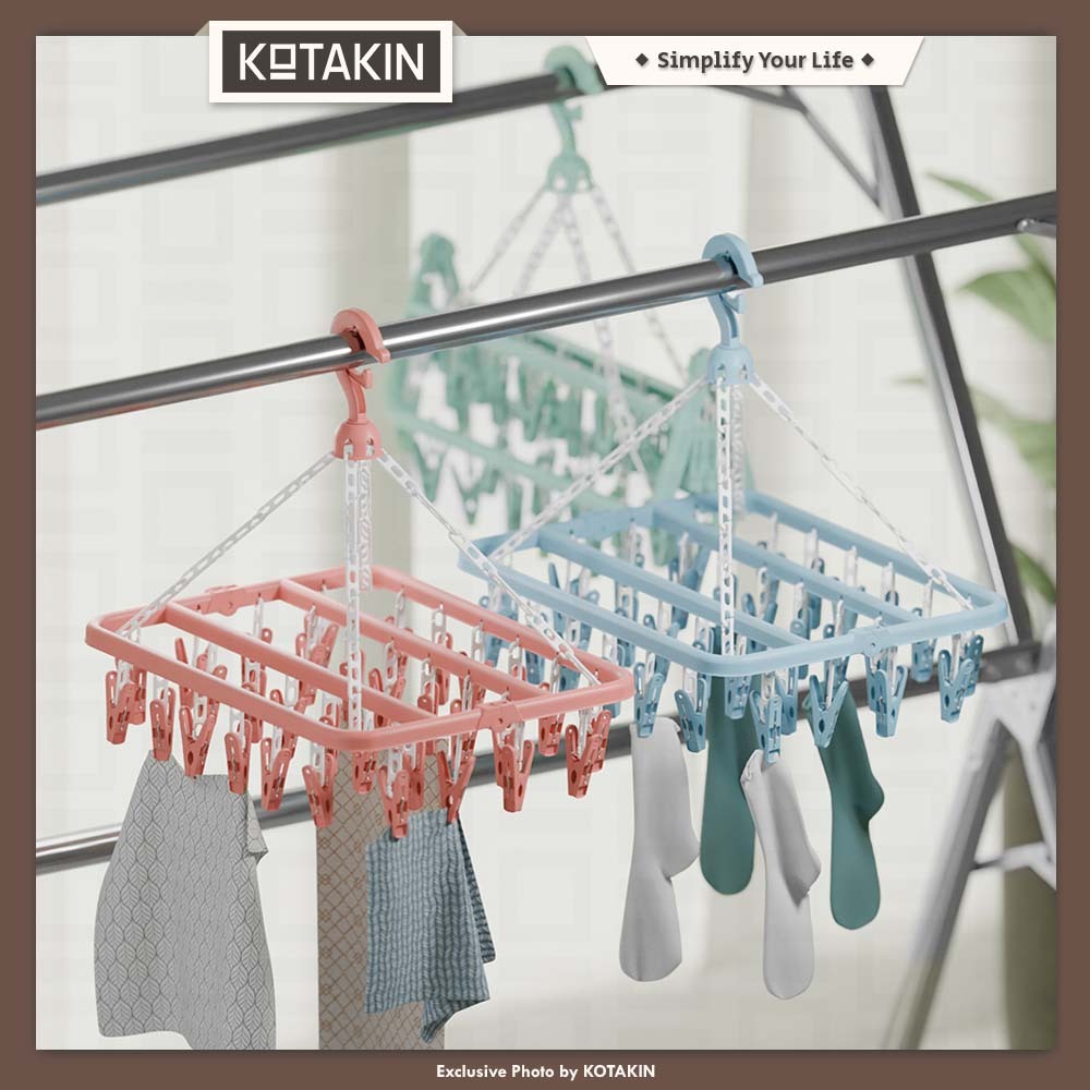 KOTAKIN Gantungan Baju 32 Jepit Jemuran Kaus Kaki Pakaian Bayi Hanger Laundry Set Plastik Tebal